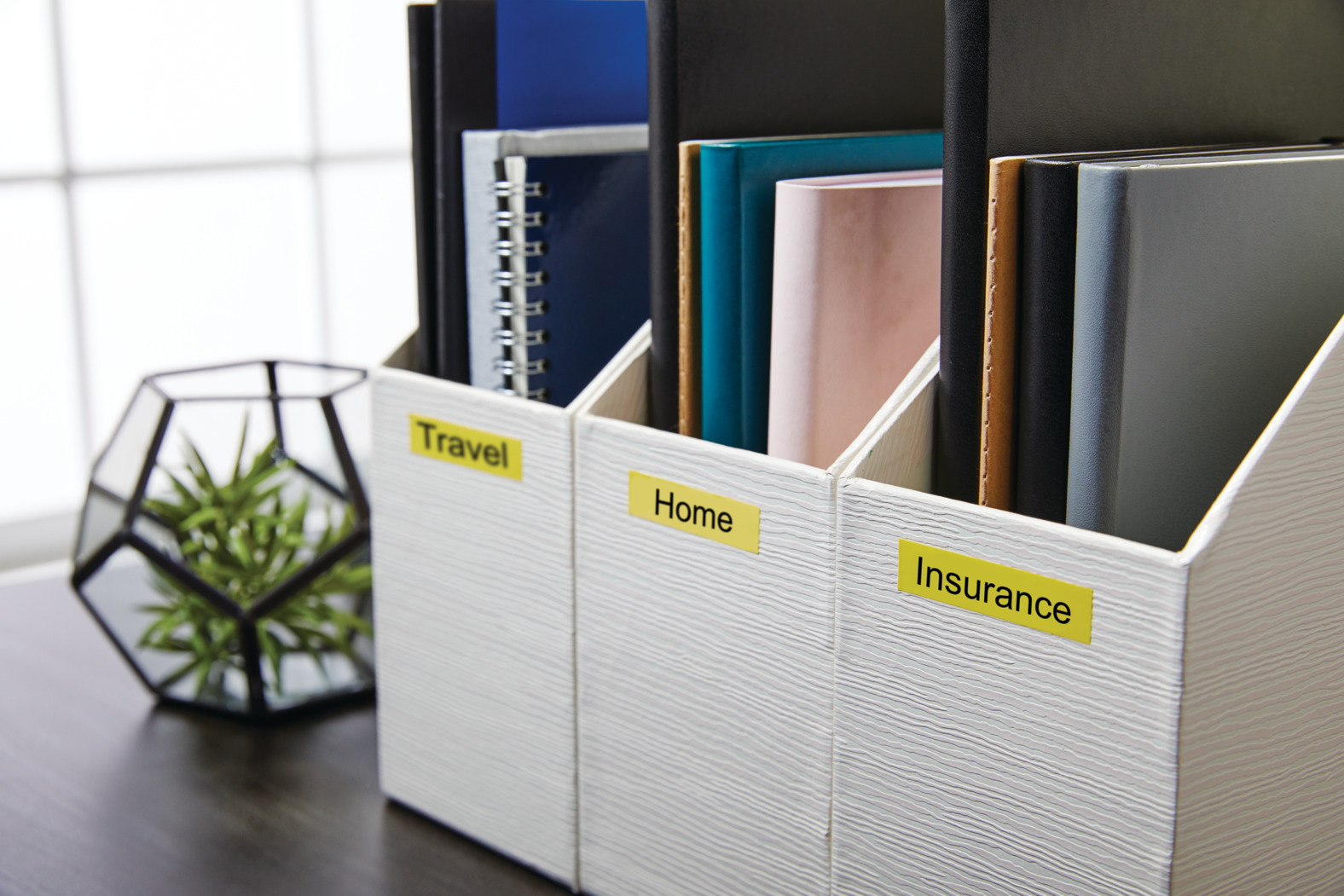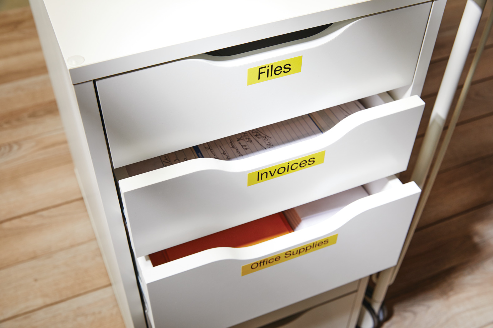 Permanentné pásky odolné voči vode, olejom, organickým zlúčeninám. Podkladová páska, text a lepidlo odolávajú teplotám -30 °C až do +150 °C. Majú dobrú priľnavosť na ABS, PVC, PE, Acrylic, sklo, drevo, papier a nerezovú oceľ. Sú určené pre Dymo zariadenia. Dĺžka 7 m.