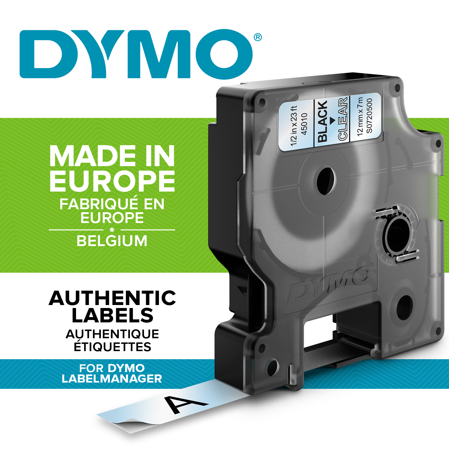 Permanentné pásky odolné voči vode, olejom, organickým zlúčeninám. Podkladová páska, text a lepidlo odolávajú teplotám -30 °C až do +150 °C. Majú dobrú priľnavosť na ABS, PVC, PE, Acrylic, sklo, drevo, papier a nerezovú oceľ. Sú určené pre Dymo zariadenia. Dĺžka 7 m.