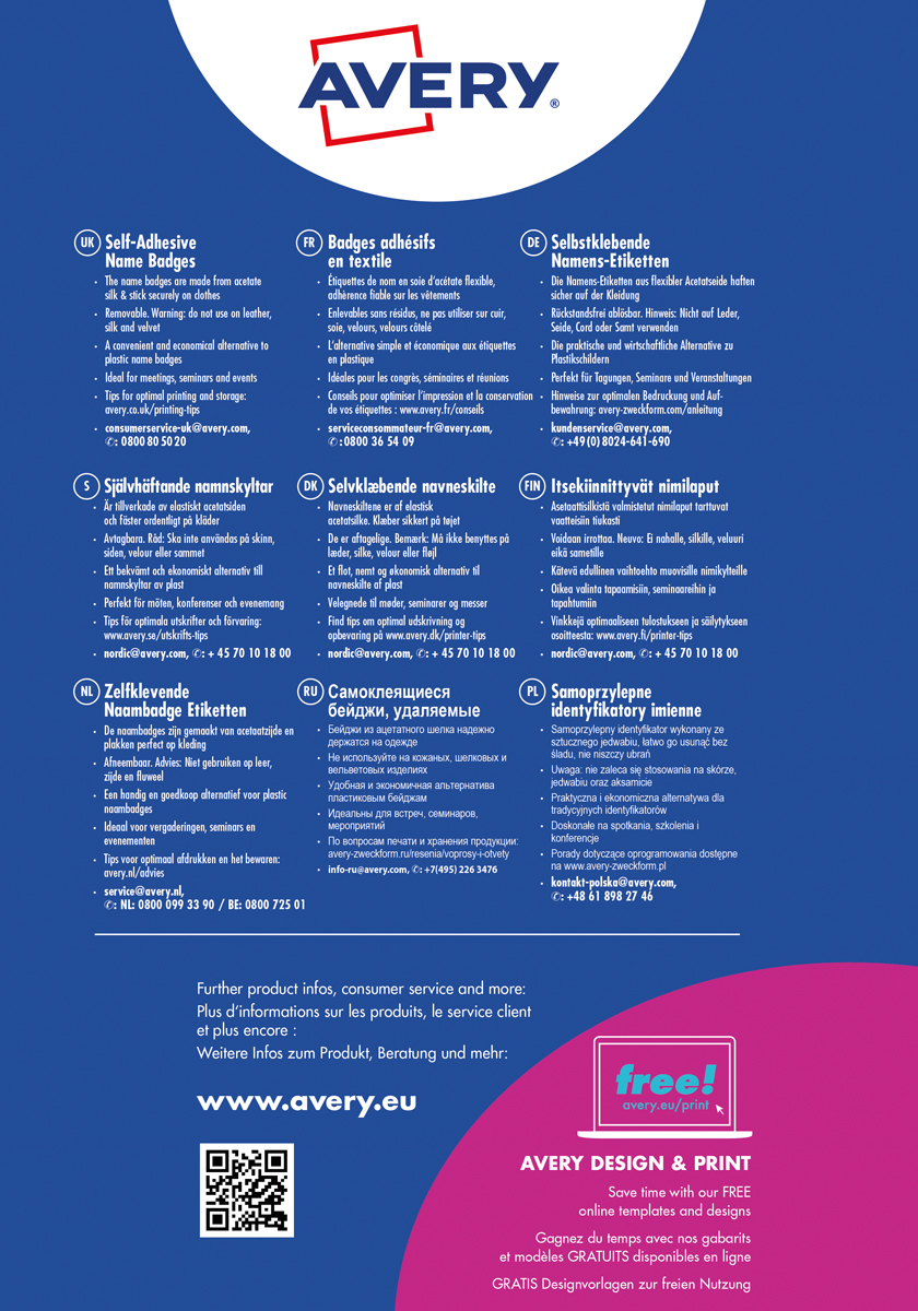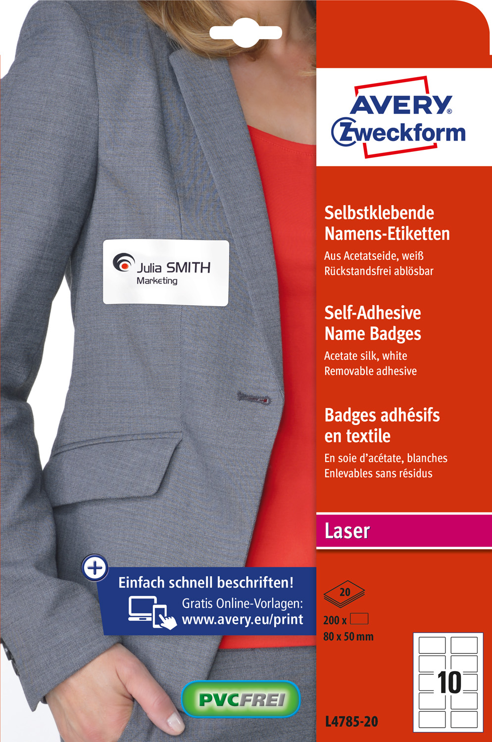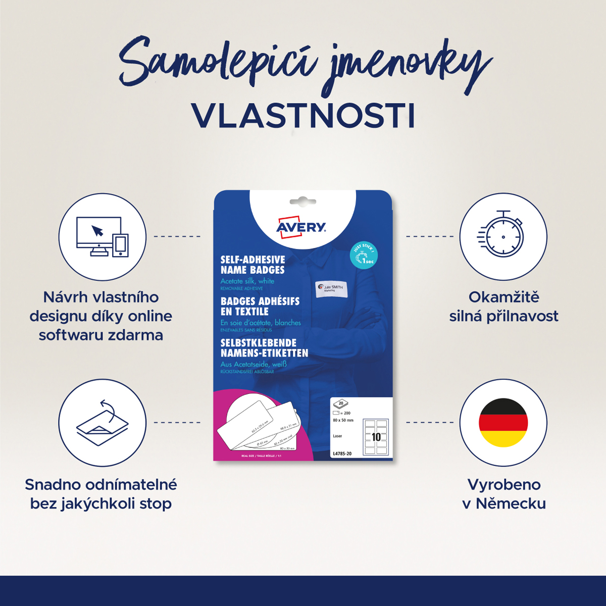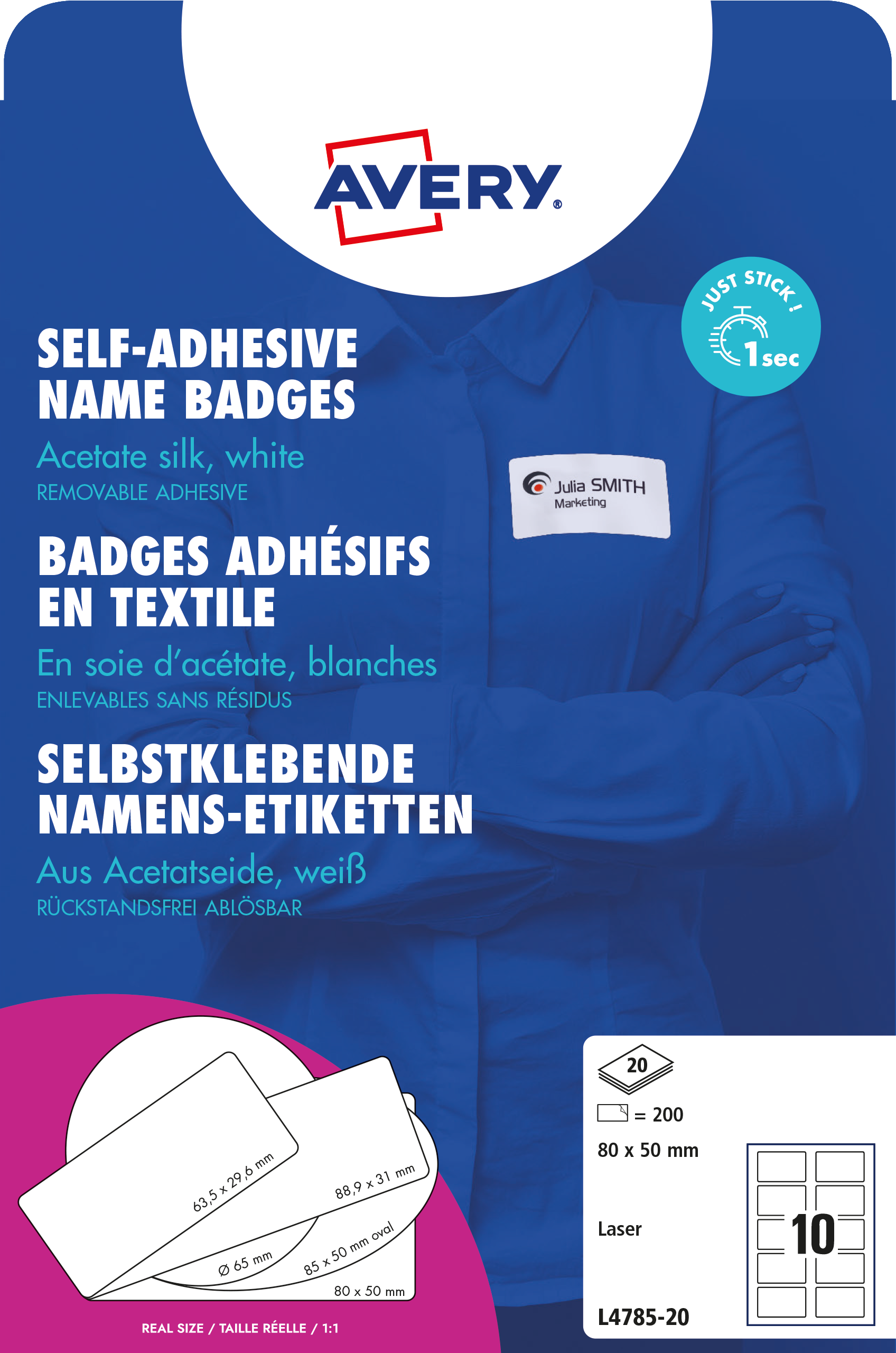 Samolepiace menovky Avery na textil 80x50mm, materiál acetátový hodváb