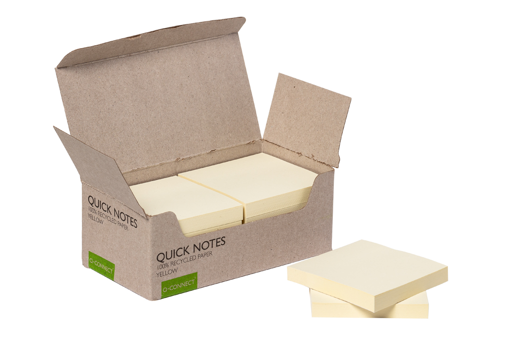Samolepiace poznámkové bločky zo 100% recyklovaného papiera gramáže 70 g / m². V balení 12 ks v žltej farbe. Rozmery 76 x 76 mm.