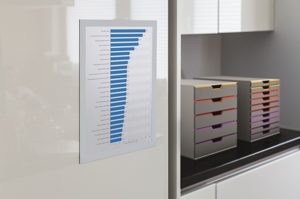 Samolepiaci informačný panel s prednou magnetickou časťou. Ideálny na vystavovanie kľúčových informácií, špeciálnych oznamov alebo dôležitých čísel. Informácie sa ľahko vymieňajú a sú čitateľné z oboch strán, ak sa panel umiestni napr. na okno alebo priehľadné dvere. Vhodný na hladké a pevné povrchy. V prípade potreby je ľahko premiestniteľný bez potreby vŕtania. Rámik vo formáte A4. Farba biela. Balenie 2 ks.