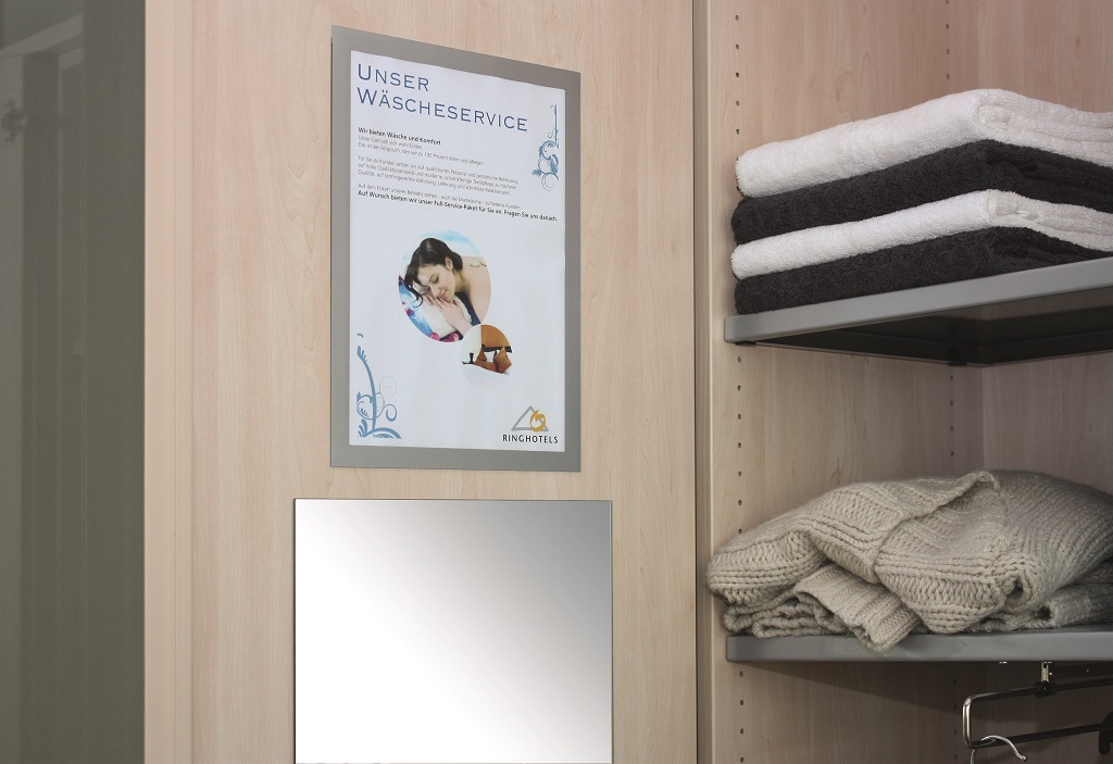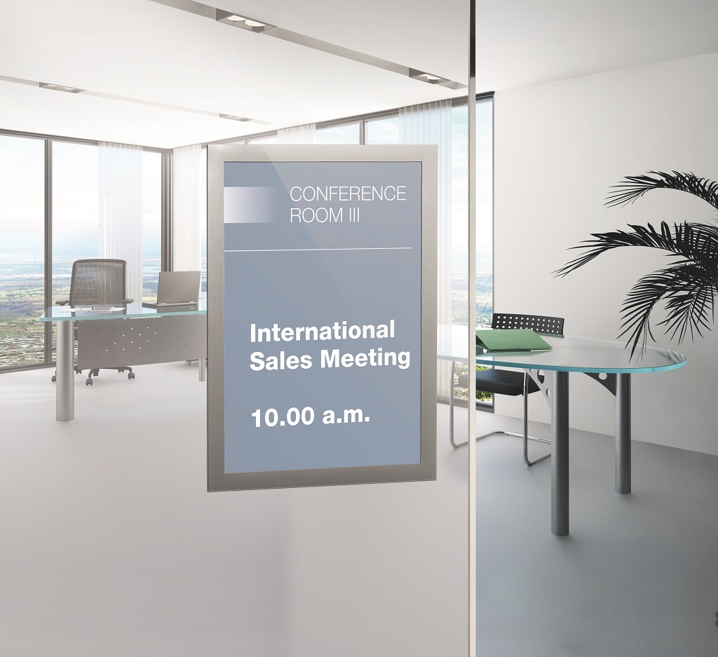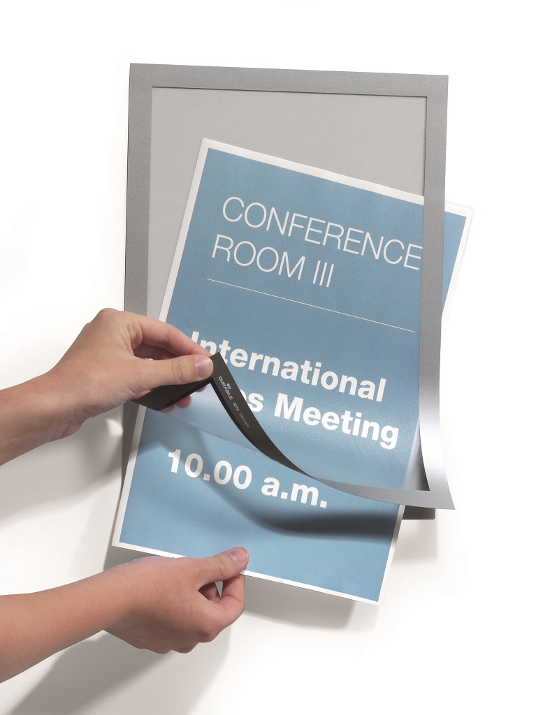 Samolepiaci informačný panel s prednou magnetickou časťou. Ideálny na vystavovanie plagátov, kľúčových informácií, špeciálnych oznamov alebo dôležitých čísel. Informácie sa ľahko vymieňajú a sú čitateľné z oboch strán, ak sa panel umiestni napr. na okno alebo priehľadné dvere. Vhodný na hladké a pevné povrchy. V prípade potreby je ľahko premiestniteľný bez potreby vŕtania. Formát A4, rámik strieborný.