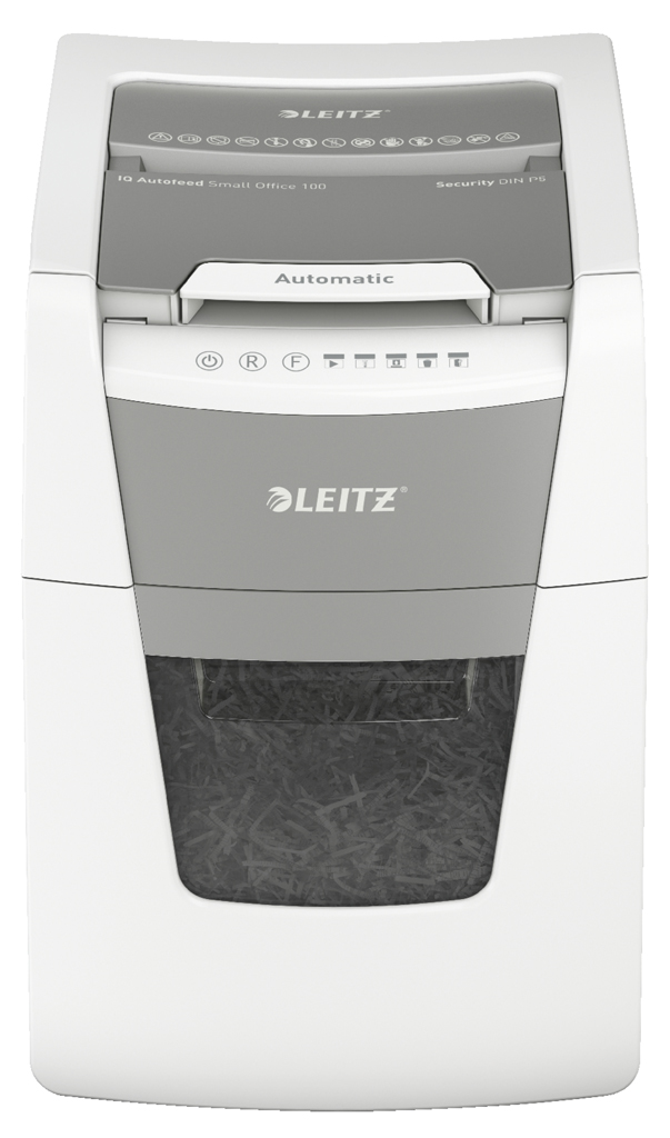 Plnoautomatická skartovačka na papier od firmy Leitz s jedinečnou čistou vyprázdňovacou funkciou. Je taká inteligentná, že potichu pracuje sama, len vložíte stoh papiera (vrátane kancelárskych sponiek a sponiek do zošívačky), zatvoríte veko a môžete ísť za svojou robotou. Ideálna na používanie v malej kancelárii. Mimoriadne dôveryhodná a vysokovýkonná skartovačka s automatickým podávaním, s funkciou proti zaseknutiu papiera, tichá a s dlhou dobou prevádzky (20 minút). Automaticky skartuje 100 hárkov A4 na úrovni zabezpečenia P-5 (2 × 15 mm) s mikrorezom do veľkého 34l koša. Jednoduché ovládanie pomocou dotykových prvkov.