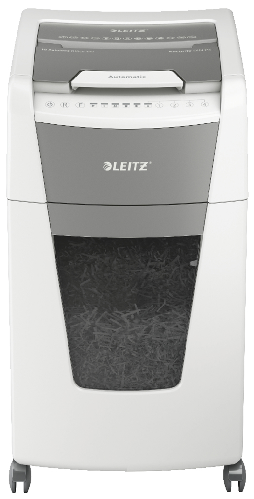 Plnoautomatická skartovačka na papier od firmy Leitz s jedinečnou čistou vyprázdňovacou funkciou. Je taká inteligentná, že potichu pracuje sama, len vložíte stoh papiera (vrátane kancelárskych sponiek a sponiek do zošívačky), zatvoríte veko a môžete ísť za svojou robotou. Ideálna na používanie v kanceláriách. Dôveryhodná a vysokovýkonná skartovačka s automatickým podávaním, s funkciou proti zaseknutiu papiera, tichá a s dlhou dobou prevádzky (60 minút). Automaticky skartuje 300 hárkov A4 na úrovni zabezpečenia P-4 (4 × 28 mm) s krížovým rezom do veľkého 60l koša. Jednoduché ovládanie pomocou dotykových prvkov.