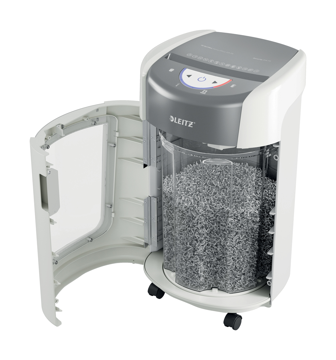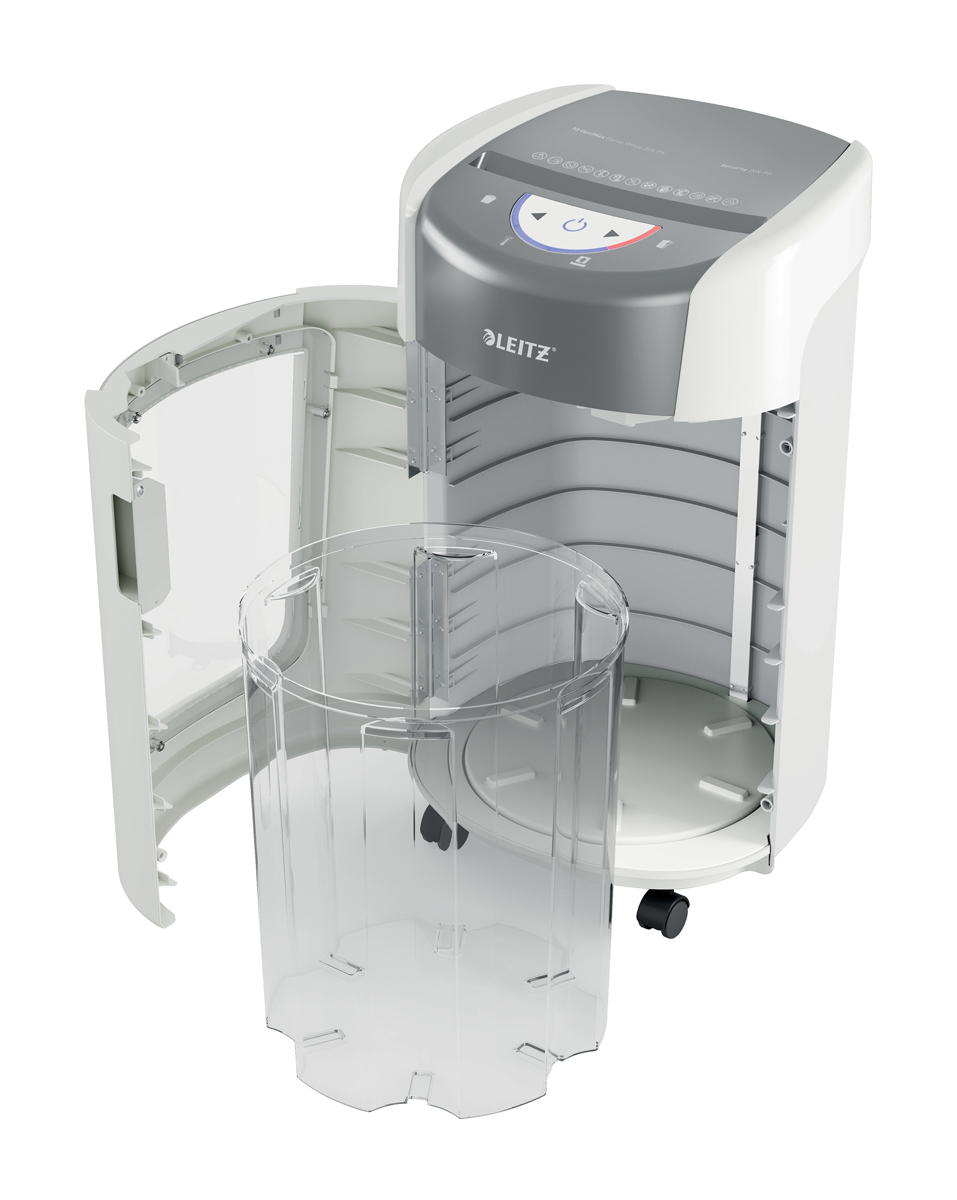 Inovatívna technológia rotujúceho koša (BRT) zvyšuje jeho kapacitu o 45 % a výrazne znižuje možný neporiadok pri vysýpaní. *Leitz IQ OptiMax 225 bol testovaný s technológiou otočného koša a bez nej.