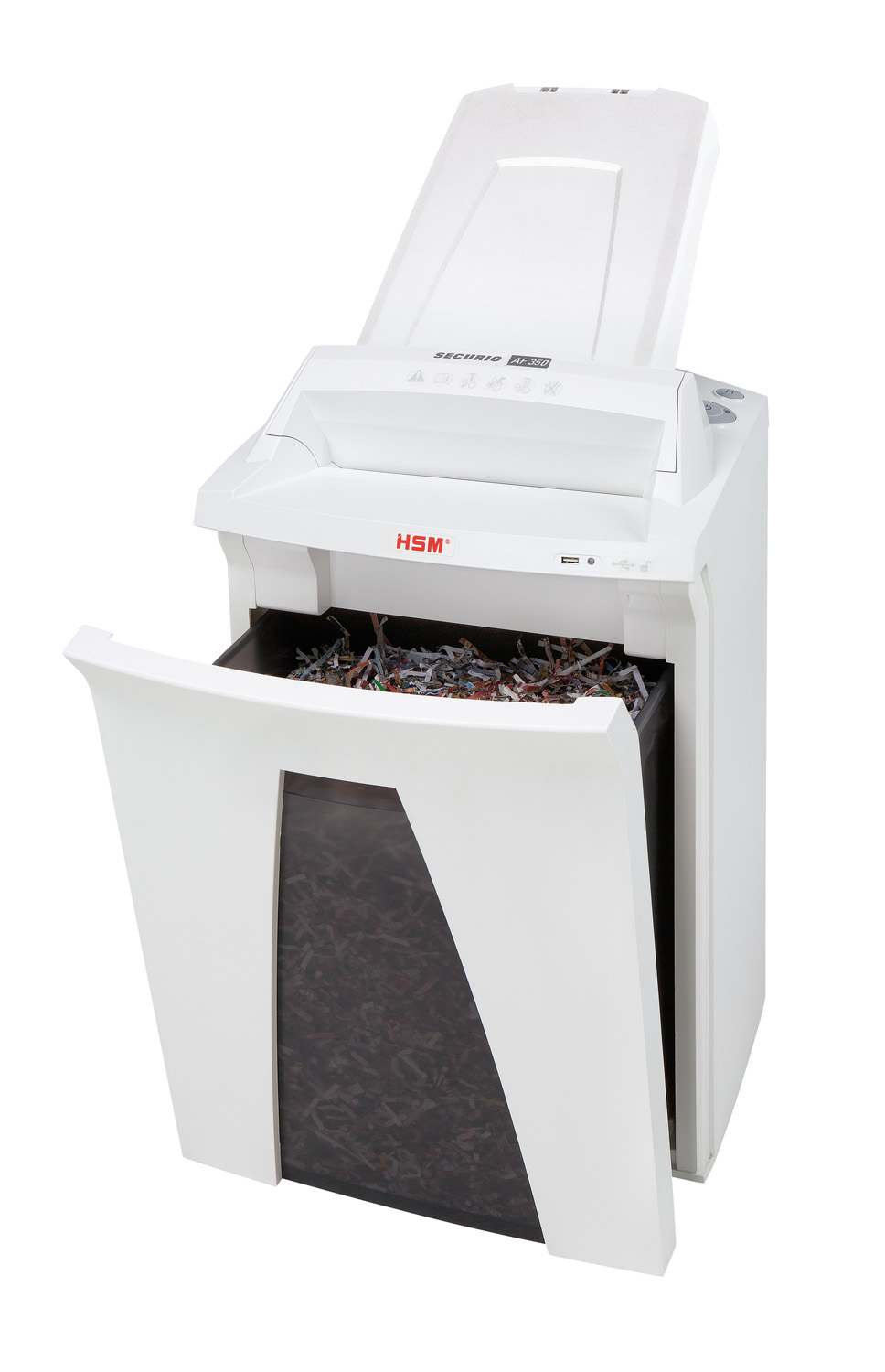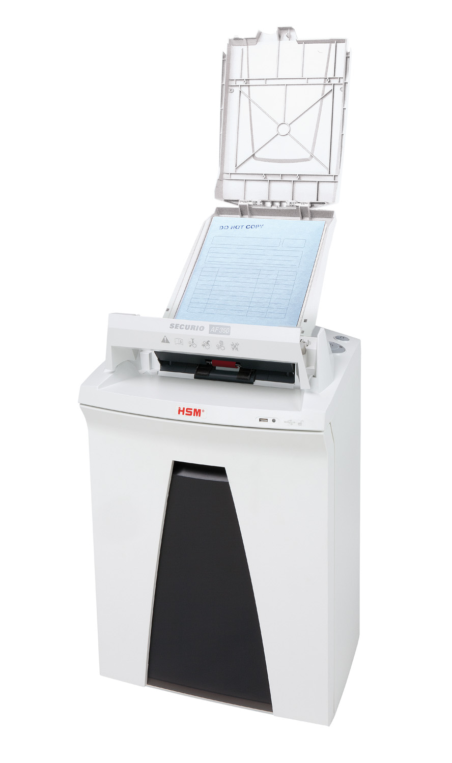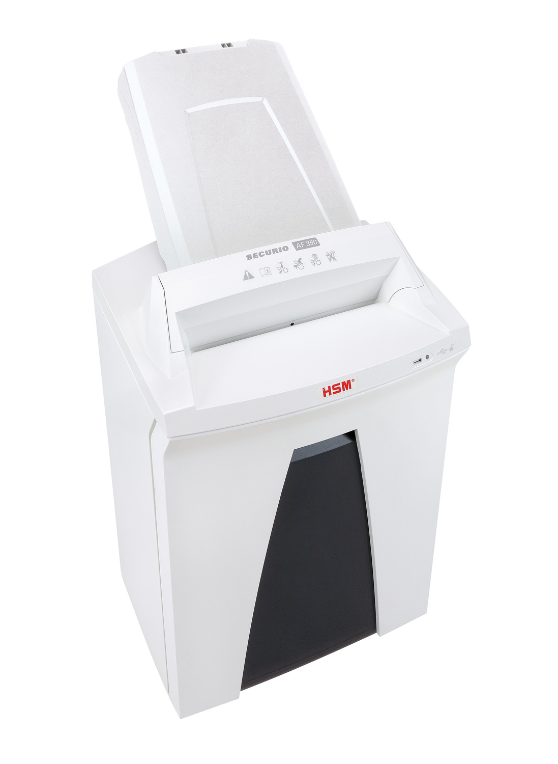 HSM SECURIO AF350 skartovačka s automatickým podávačom papiera, stupeň utajenia 6-prísne tajné, častice 1,9 x 15 mm, manuálna kapacita 6 listov. Jednoduchý a pohodlný spôsob ničenia údajov na pracovisku. Skartovačka s automatickým podávačom papiera bez námahy skartuje stohy papiera do 350 listov. Papiere môžu byť vložené do zásobníka a budú automaticky zoskartované.