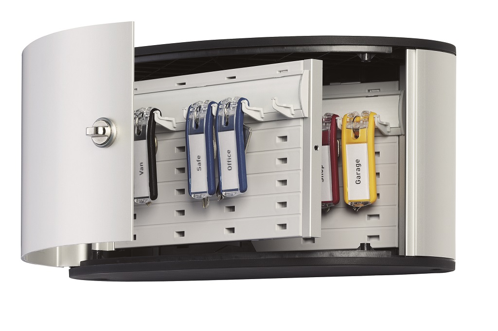 Malá skrinka na 12 kľúčov s dvierkami, otvárajúcimi sa z dôvodu lepšej obsluhy v 180° uhle, uzatváranie na západku. Optimálna do domácností a malých kancelárií. Jednoduchá montáž na stenu. Súčasťou balenia je montážna sada a 6 menoviek na kľúče v rôznych farbách. Rozmery (š×v×h) 302×160×118 mm. Farba strieborná.