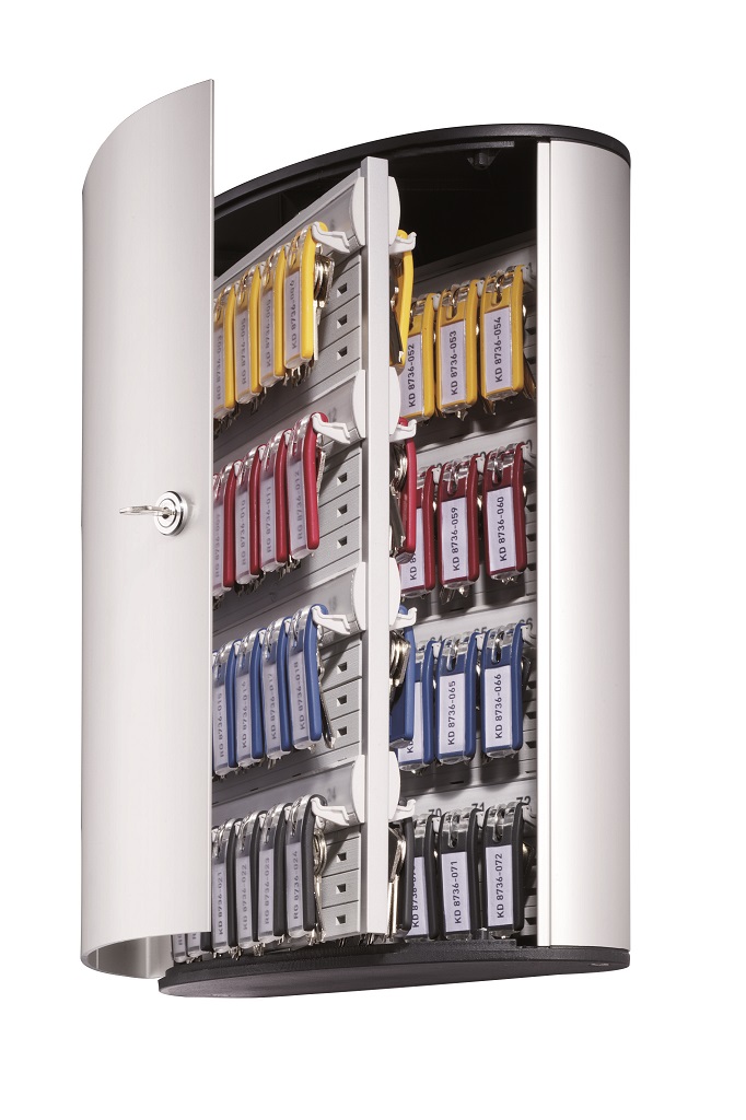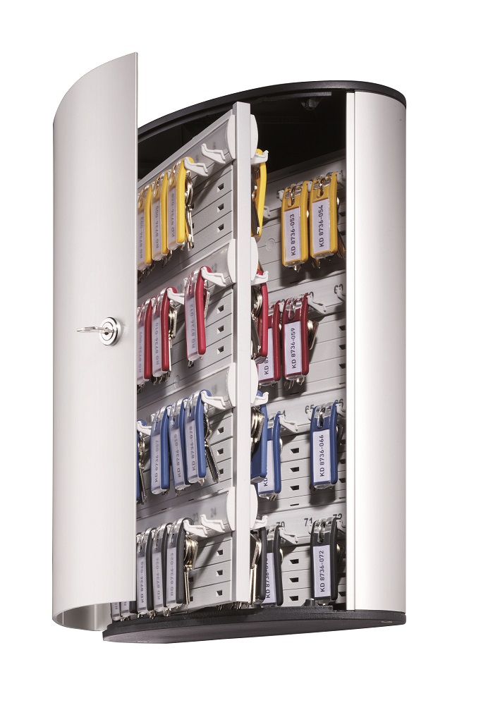Veľká krinka na 72 kľúčov s dvierkami, otvárajúcimi sa z dôvodu lepšej obsluhy v 180° uhle. Jednoduchá montáž na stenu. Súčasťou balenia je montážna sada, 2 bezpečnostné kľúče a 6 menoviek na kľúče v rôznych farbách. Farba strieborná.