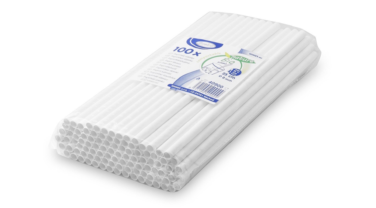 Slamky papierové biele ’JUMBO’ 8 mm x 25 cm (100 ks)