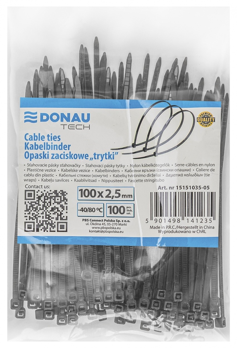 Sťahovacia páska na káble DONAU TECH 100×2.5mm, 100ks, čierna