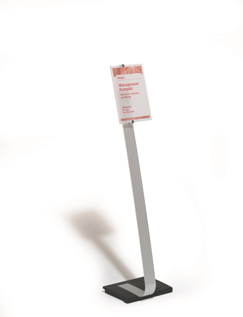 Vysoko kvalitný elegantný hliníkový stojan s informačným panelom Crystal Sign formátu A4,dodávaným s 2 polopriehľadnými výplňami na popis. Použiteľný na výšku alebo na šírku. Zaťaženie stojana a gumové podložky zabezpečujú stabilitu. Protiodrazový panel je možné otočiť vertikálne alebo horizontálne a naklápať v rozmedzí 10 stupňov.Šablóny na potlač sú voľné stiahnuteľné na www.durable.de.