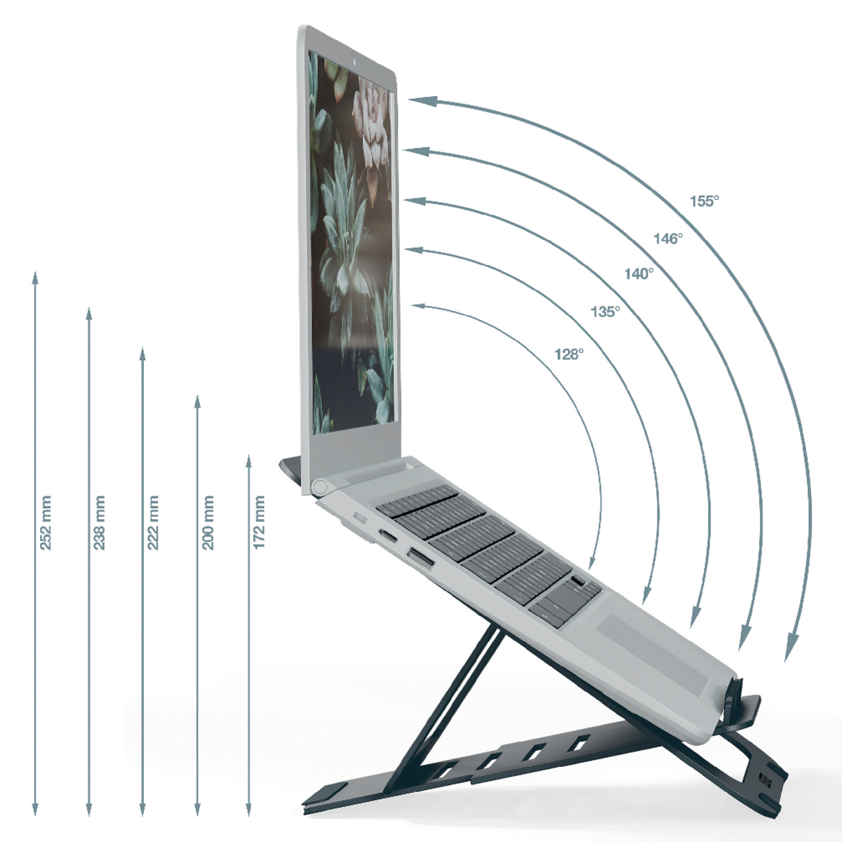 Stojan na notebook nastaviteľný Leitz Ergo hliníkový ultra plochý nastaviteľný, zamatovosivý