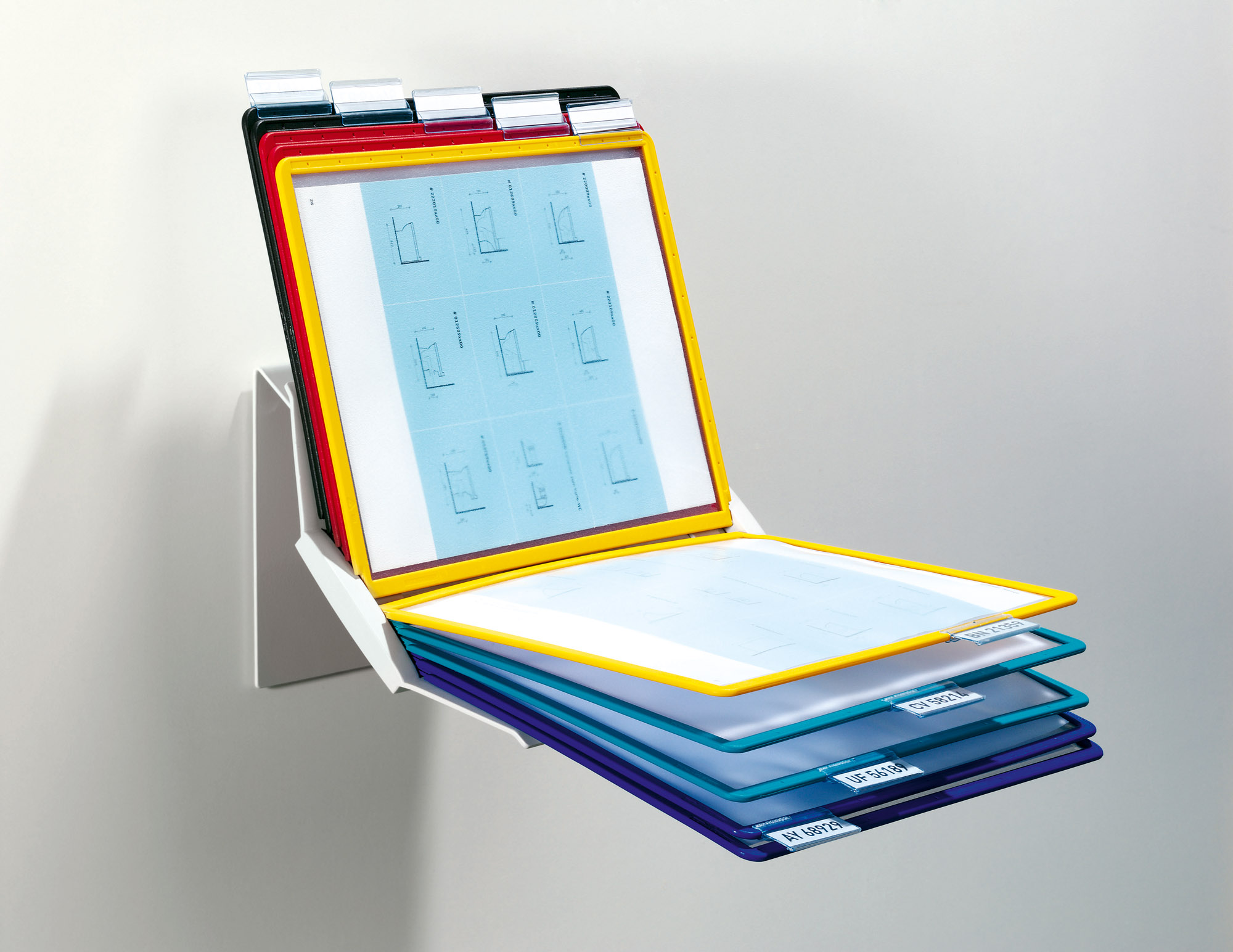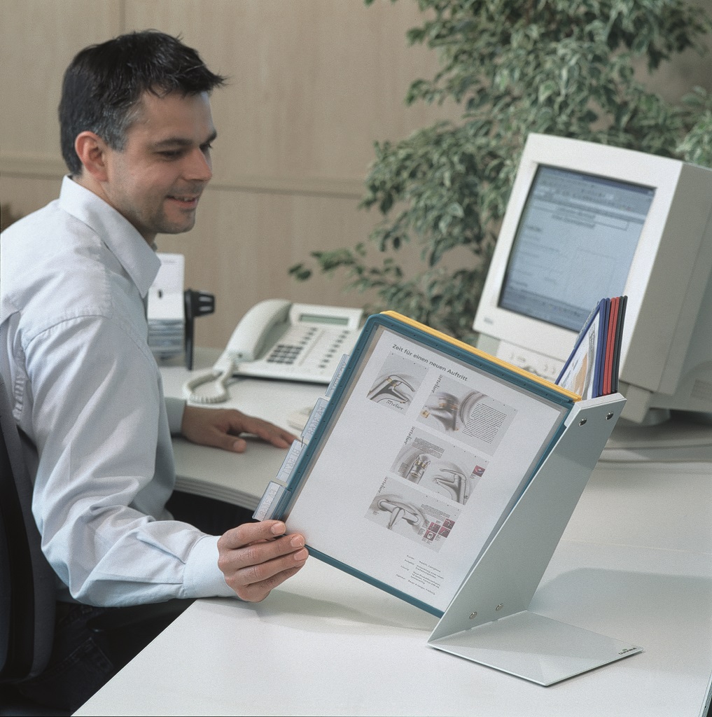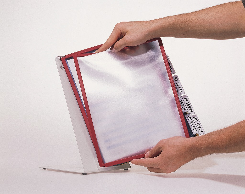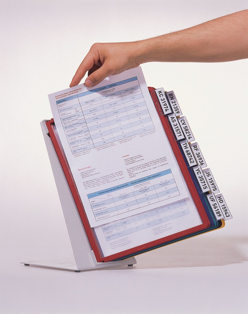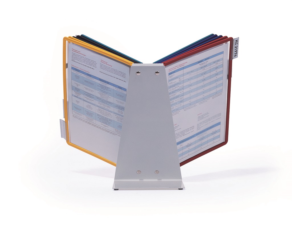 Extrémne pevný stojan na stôl v tvare L. Vyrobený z kovovej platne s plastovým poťahom odolným voči oderu. Ideálny na použitie v dielňach, skladoch, priemysle a kuchyniach. Dodávaný s 10 polypropylénovými panelmi SHERPA v mixe farieb (čierna, červená, žltá, zelená a tmavomodrá).