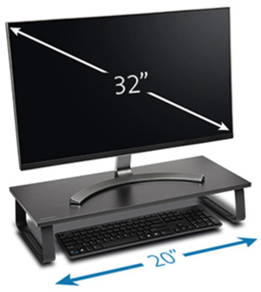Extra široký podstavec pod monitor s pevnou oceľovou základňou zdvíha monitor do výšky optimálnej na zlepšenie držania tela, čo podporuje zdravie a zvyšuje produktivitu. Podstavec je nevyhnutným doplnkom pre všetky kancelárie, ktoré kladú dôraz na pohodu a zdravie zamestnancov. Maximálna nosnosť 20 kg, rozmery 60 × 26 × 12 cm (Š×H×V). Farba čierna.