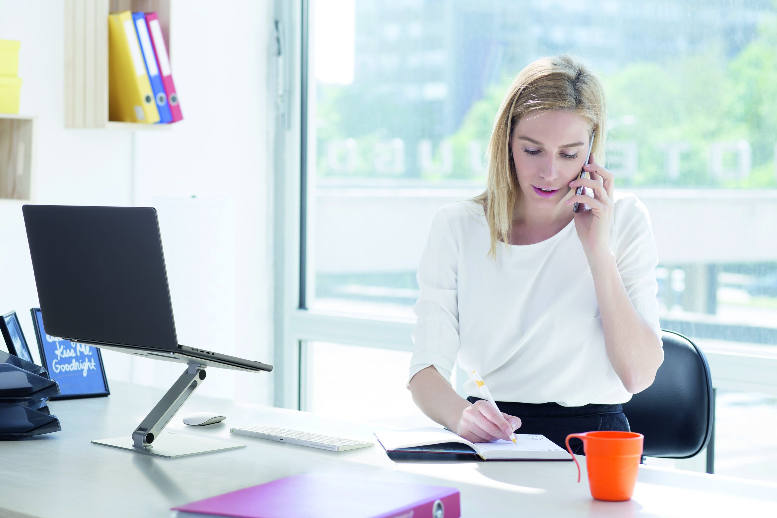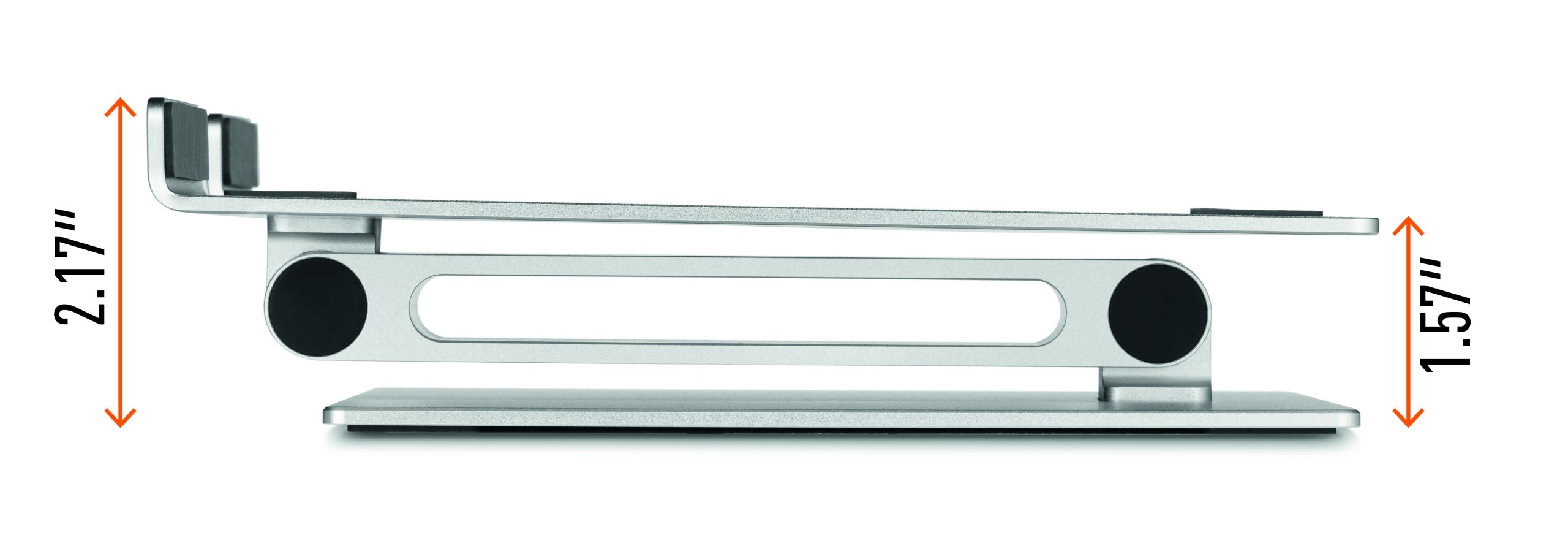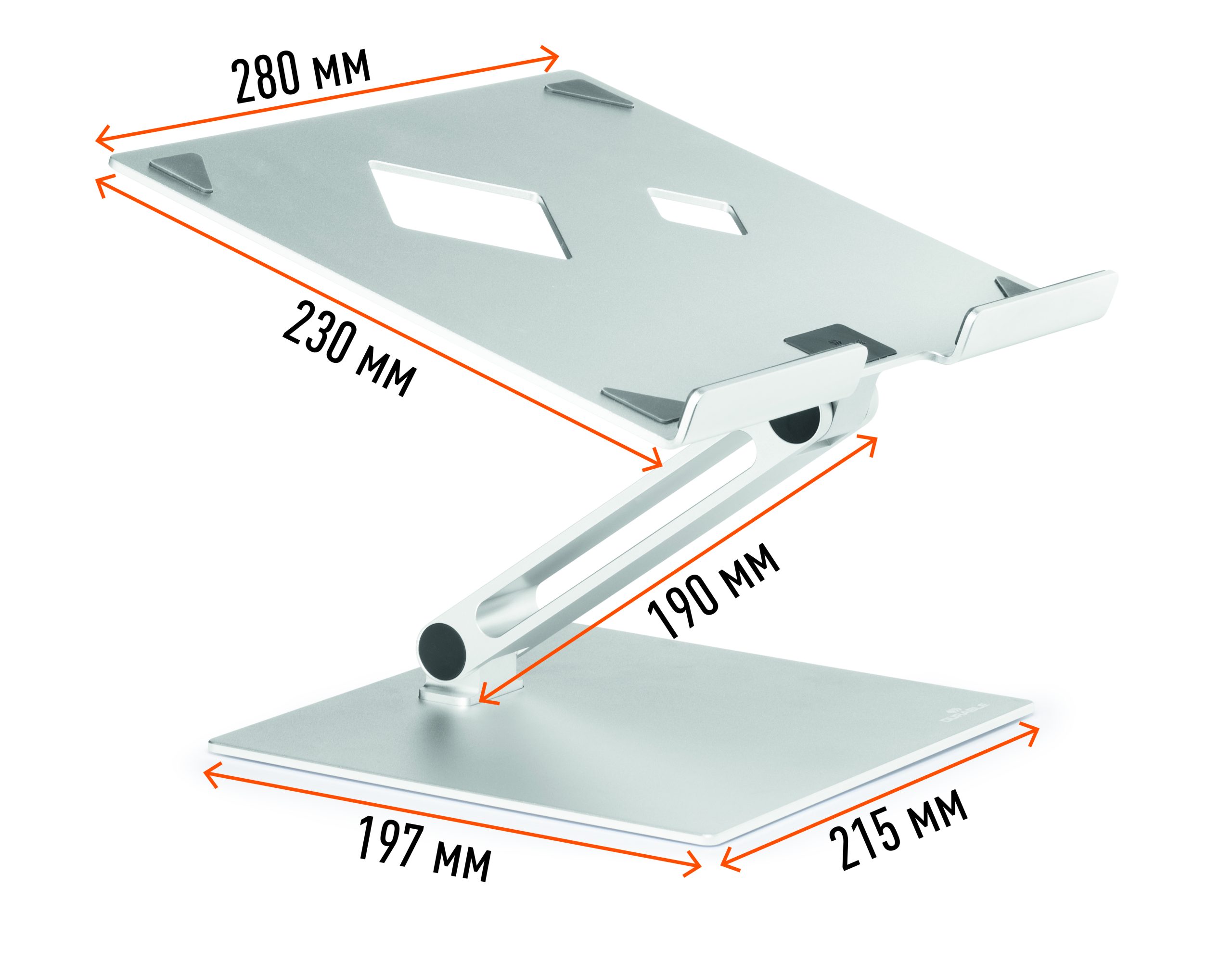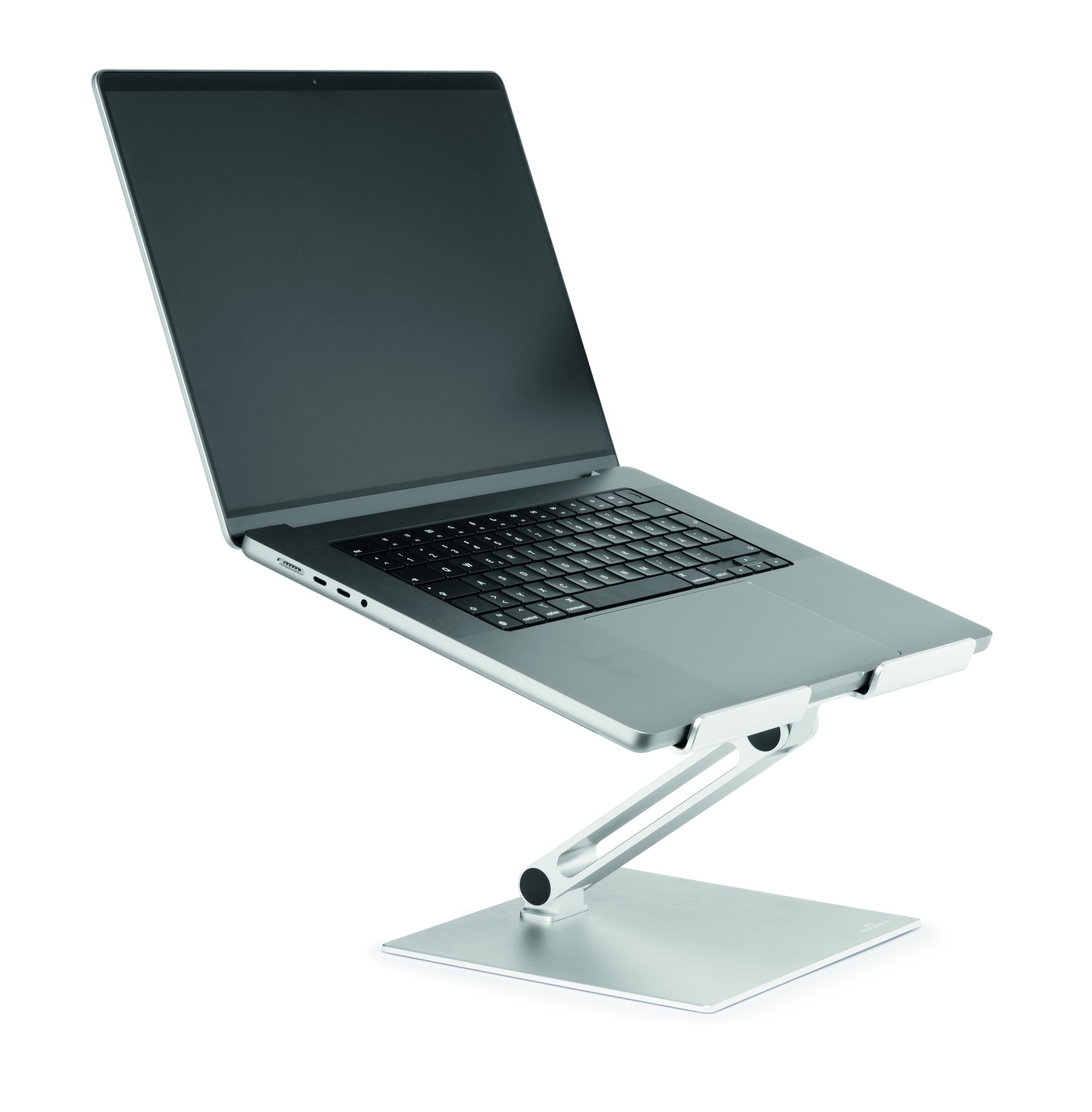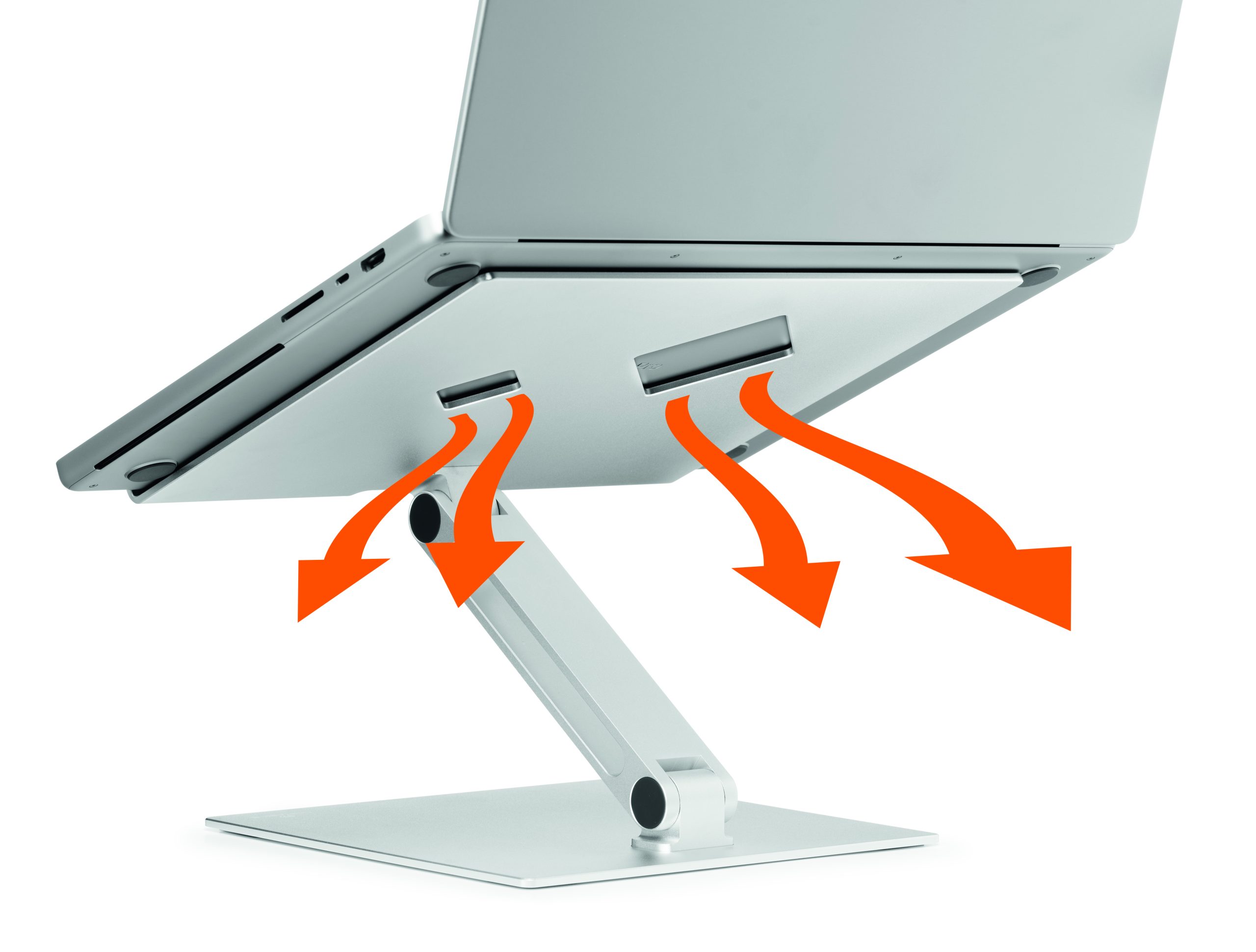 Univerzálny nastaviteľný stojan na stôl pre notebooky a tablety od 10” do 17”. Uľahčuje prácu vďaka ergonomickej a flexibilnej nastaviteľnosti výšky a uhla sklonu. Umožňuje používanie notebookov ako stolových monitorov (v kombinácii s externou klávesnicou a myšou). Vysoko stabilný pre bezpečnú prácu. Protišmykový gumený povrch chráni zariadenie pred poškriabaním. Mimoriadne robustný.