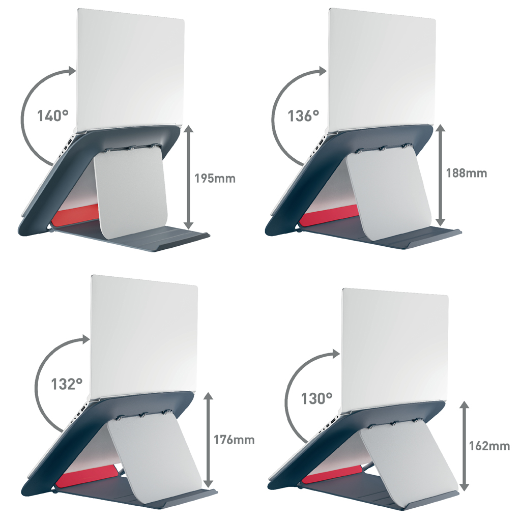Ergonomicky navrhnutý stojan na notebook pre maximálne pohodlie pri práci. Ideálny na prácu posediačky alebo postojačky pri výškovo nastaviteľnom stole, čo ešte viac zlepšuje celkové zdravie a pohodu Nastavte výšku tak, aby bola obrazovka notebooku v ideálnej pozícii na sledovanie Stojan na notebook udržiava batériu a ostatné komponenty v perfektnom stave vďaka chladeniu prúdením vzduchu Rýchle a jednoduché individuálne prispôsobenie stojana na notebook, štyri rôzne výšky na výber Vďaka kompaktnému dizajnu a podstavcu je ideálnym doplnkom každého pracovného stola Keď ho nepoužívate, jednoducho ho zložíte Gumové prvky a integrovaný držiak poskytujú bezpečné a stabilné uchytenie vášho notebooku, aby zostal pevne na svojom mieste Vhodné pre notebooky od 13` do 17`. Tento výrobok by sa mal používať s externou klávesnicou a myšou (predáva sa samostatne) Kolekcia Leitz Cosy Ergo spája štýl s prvotriednou kvalitou na vytvorenie zdravého a aktívneho pracovného prostredia. Farba sivá.