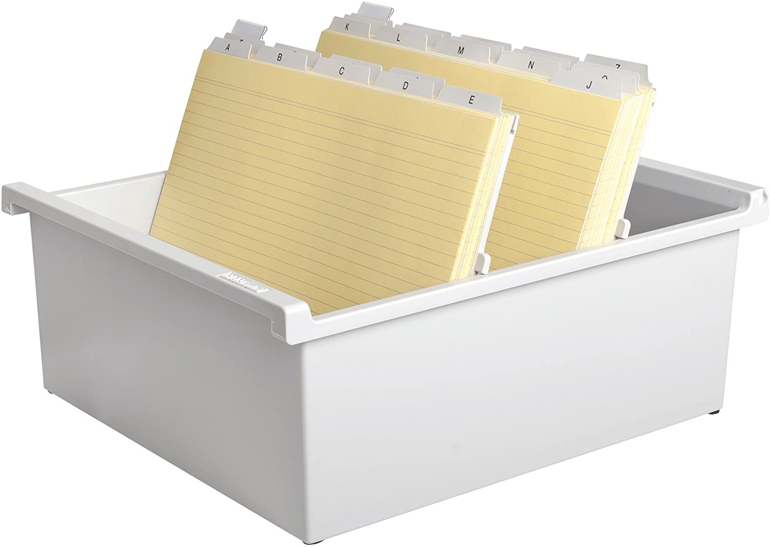 Kartotéka z antistatického nárazuvzdorného plastu na 1000 kartičiek ukladaných horizontálne. Vybavená dvoma plastovými oddeľovačmi, (inak prázdna) a ochrannými plstenými podložkami. Dodávaná bez vrchného krytu. br />Formát karty: A4