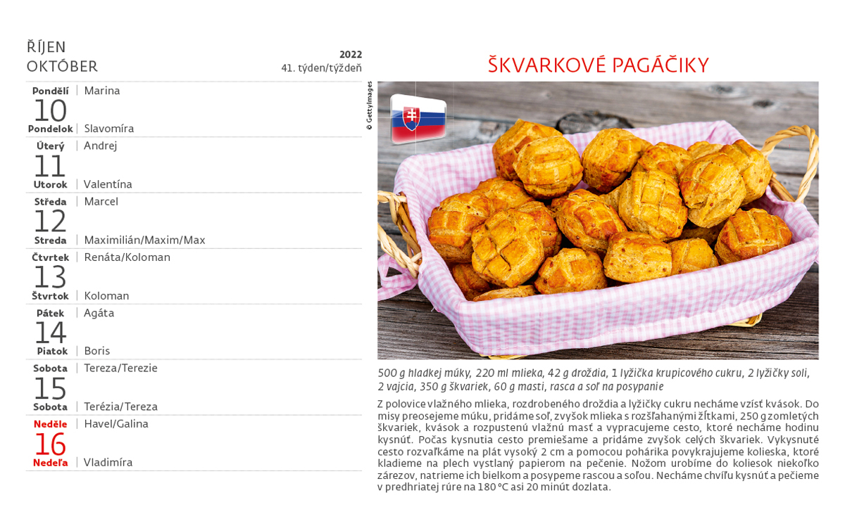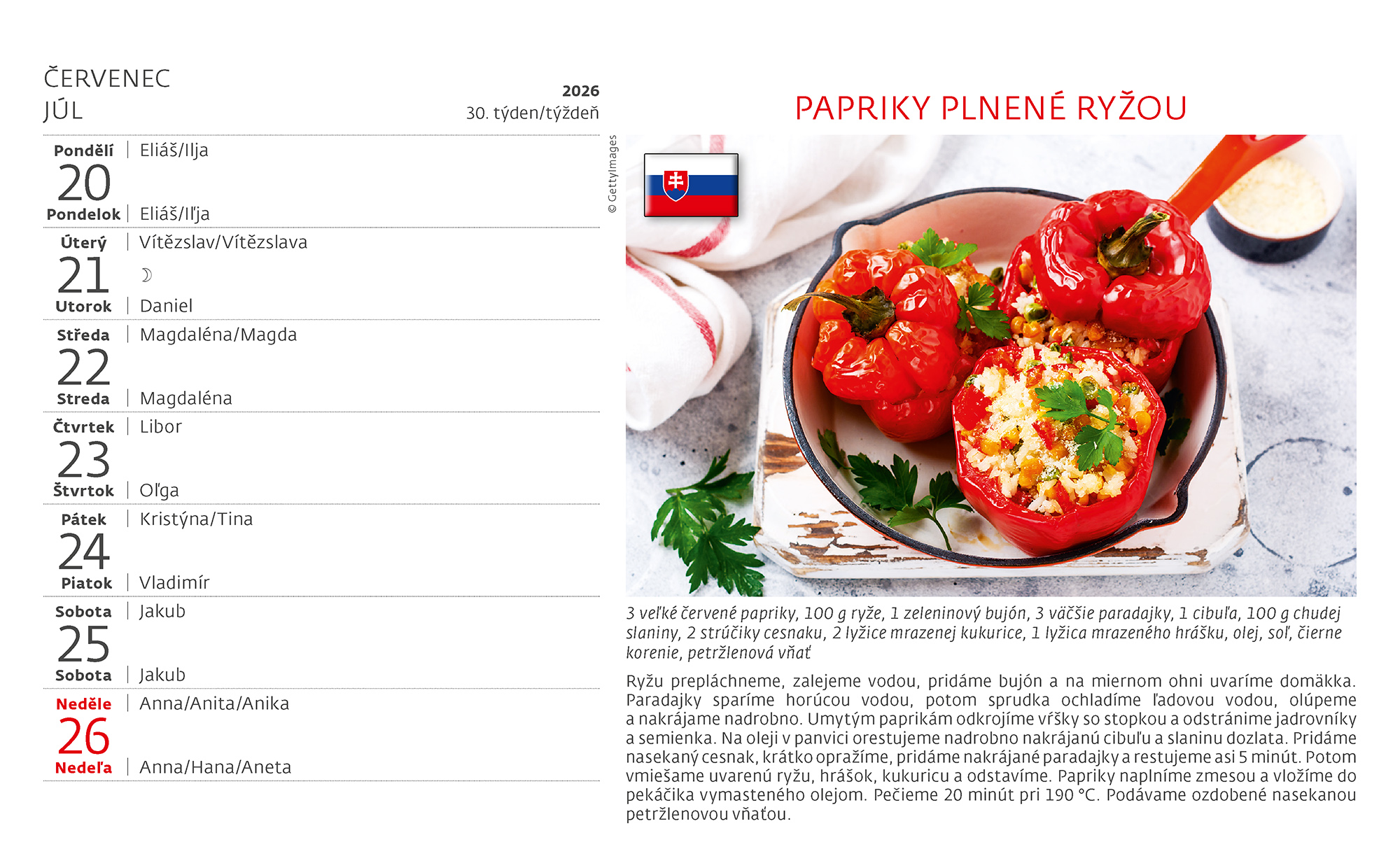 Stolový kalendár riadkový 22,6×13,9 cm – Česko-slovenská kuchárka 2026