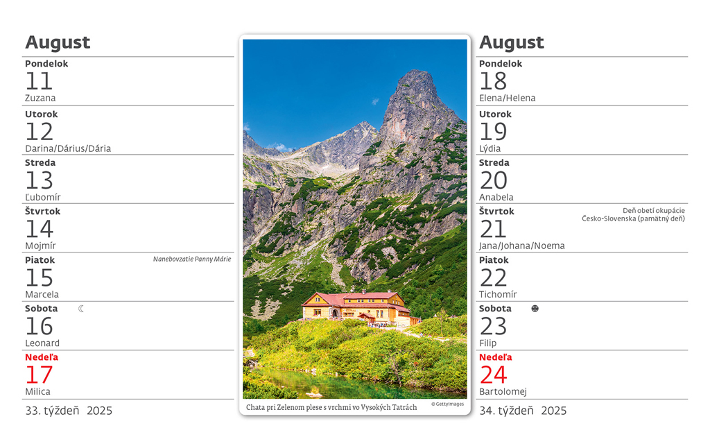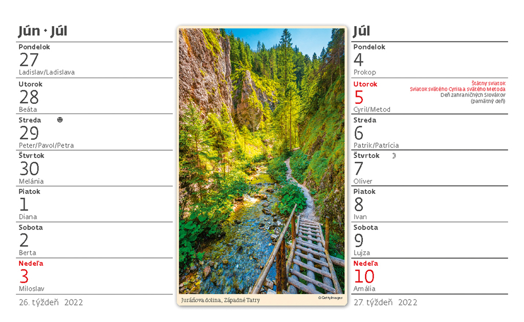 Formát kalendára: 22,6 x 13,9 cm