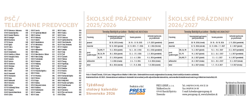 Stolový kalendár stĺpcový 30 x 12 cm – Slovensko 2026