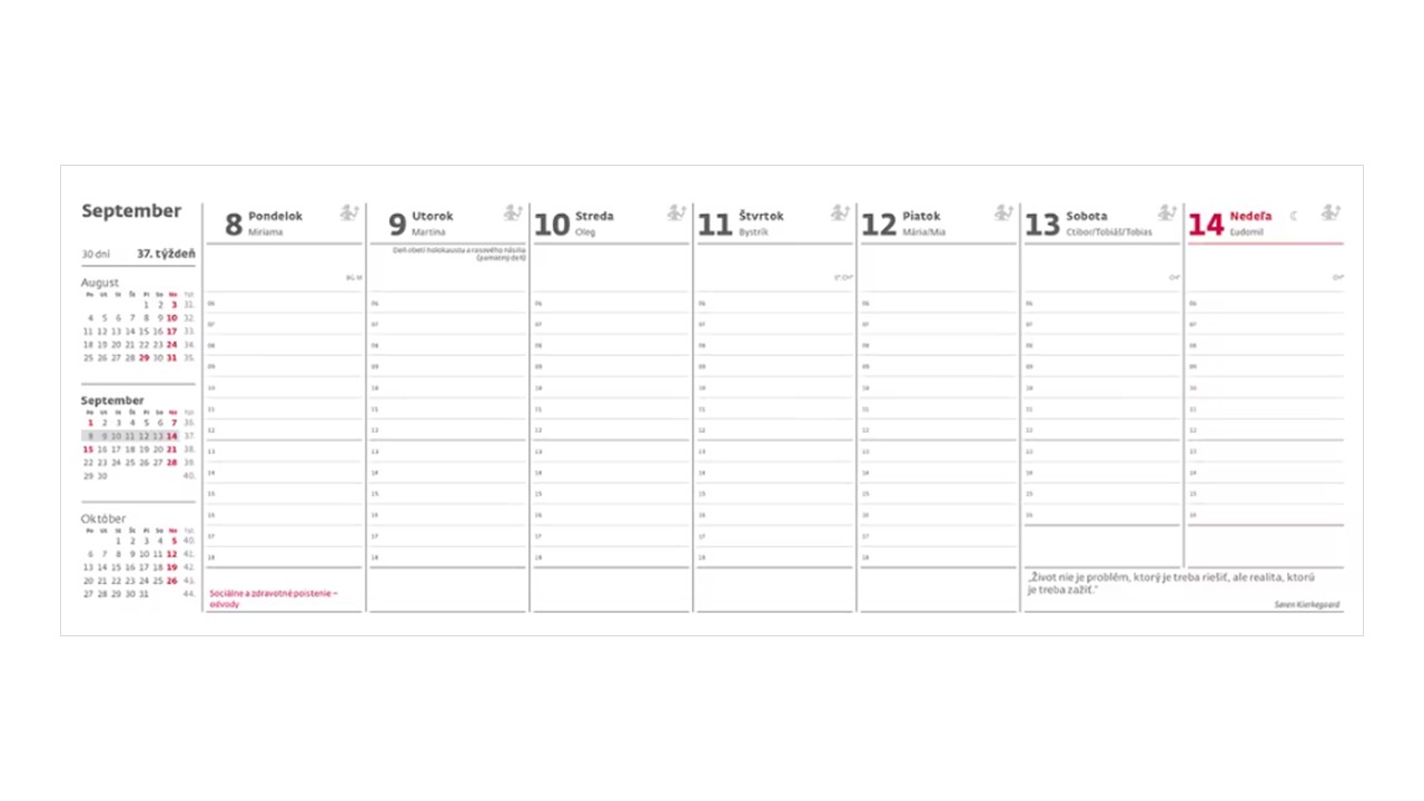 + dane a ročné obdobia, znamenia zverokruhu, citáty, sviatky v EÚ, 3mesačný prehľad