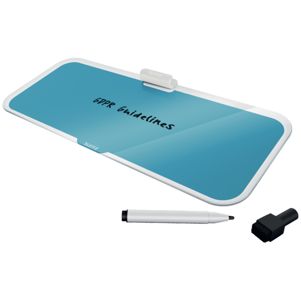 • Sklenená stolná tabuľka Leitz Cosy je unikátny nástroj na opakované písanie poznámok, suchým popisovačom jednoducho napíšete dôležité informácie, kedykoľvek ju utriete a môžete písať znova.