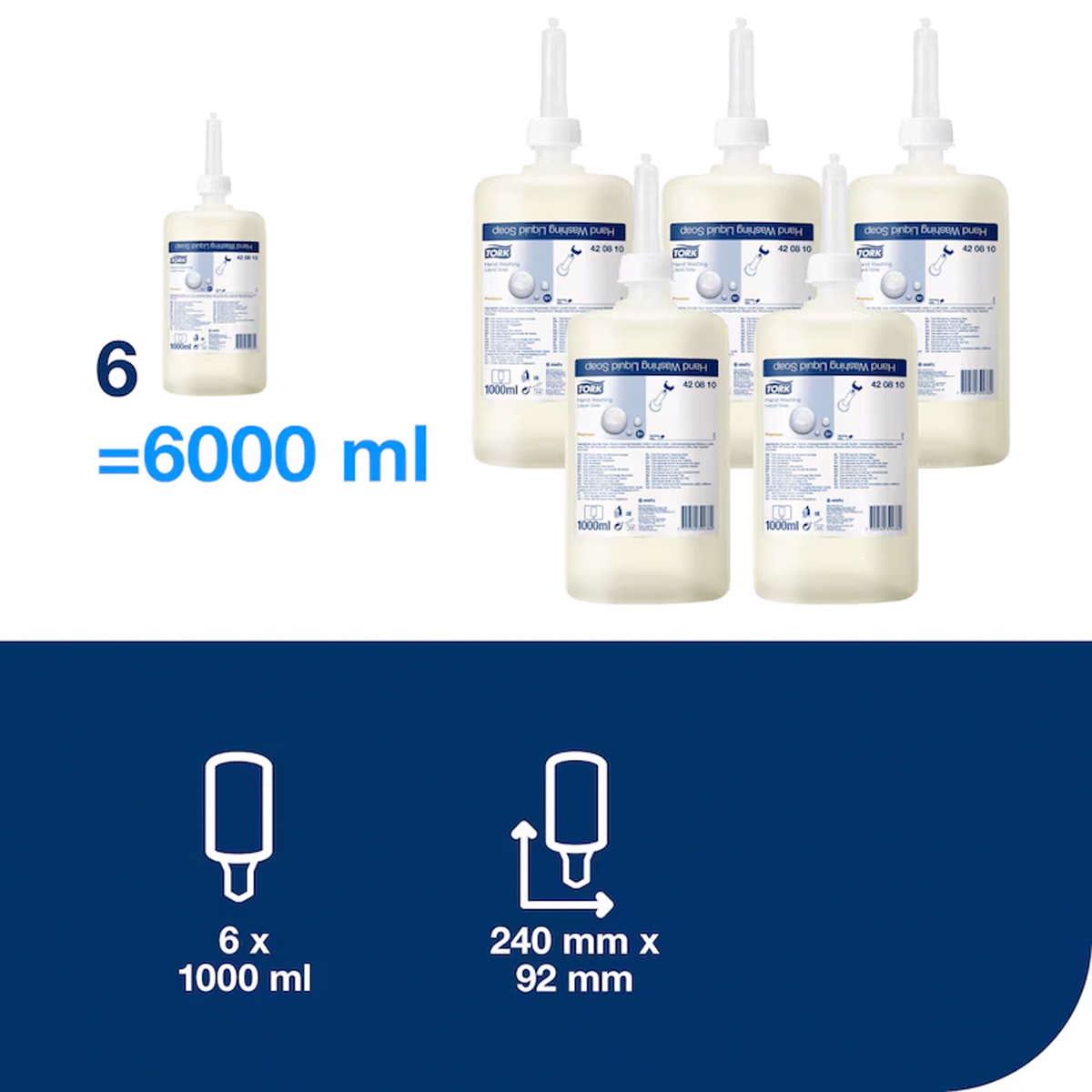Tork tekuté mydlo na ruky vám pomôže zaistiť dobré hygienické návyky. Jeho receptúra bez parfumácie a farbív je šetrná k pokožke. Ideálne pre prostredia, v ktorých sa musia často umývať ruky. Vhodný pre Tork zásobník na tekuté mydlo a mydlo v spreji, ktorý je overený ako ľahko používateľný a všetkým používateľom poskytuje správnu hygienu rúk.