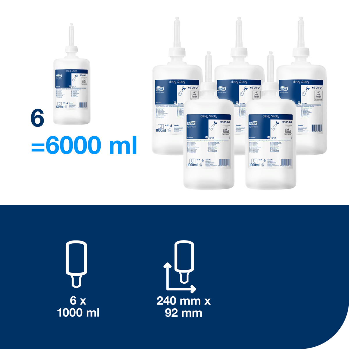 Tork priemyselné tekuté mydlo obsahuje zložku na rozpúšťanie mastnoty, ktorá je vysoko účinná, no šetrná k pokožke. Mydlo je bez pridaných vôní a farbív, čo znižuje alergické reakcie. Vhodný pre Tork zásobník na tekuté mydlo a mydlo v spreji, ktorý je overený ako ľahko používateľný a všetkým používateľom poskytuje správnu hygienu rúk.