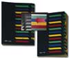 24-dielna stolová triediaca kniha Pagna z pevného hladeného kartónu gramáže 450 g na číselné alebo abecedné triedenie. Farba vrchného obalu čierna. Otvory na titulnej strane na popis jednotlivých oddielov, jednotlivé oddiely farebne rozlíšené, rýchle otvorenie príslušného oddielu vďaka bočnému výseku, rozťahovateľný chrbát s veľkou kapacitou jednotlivých oddielov.