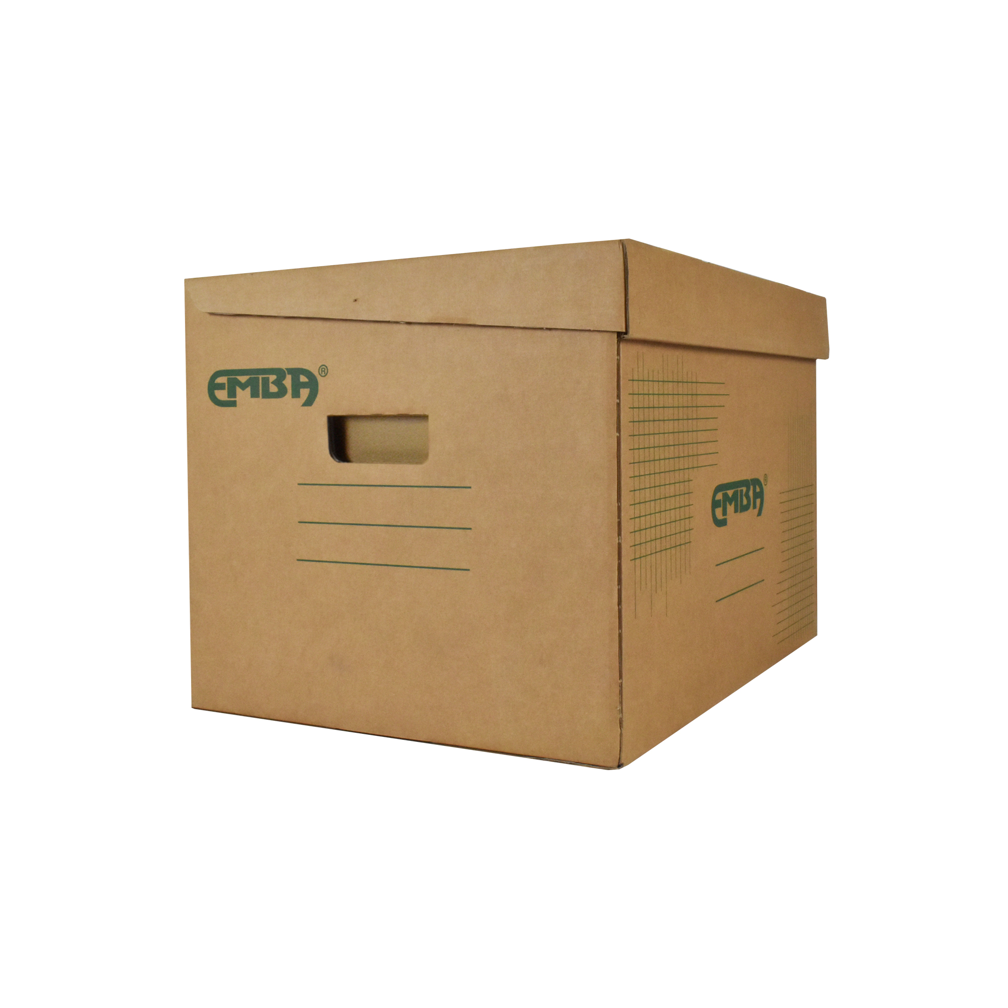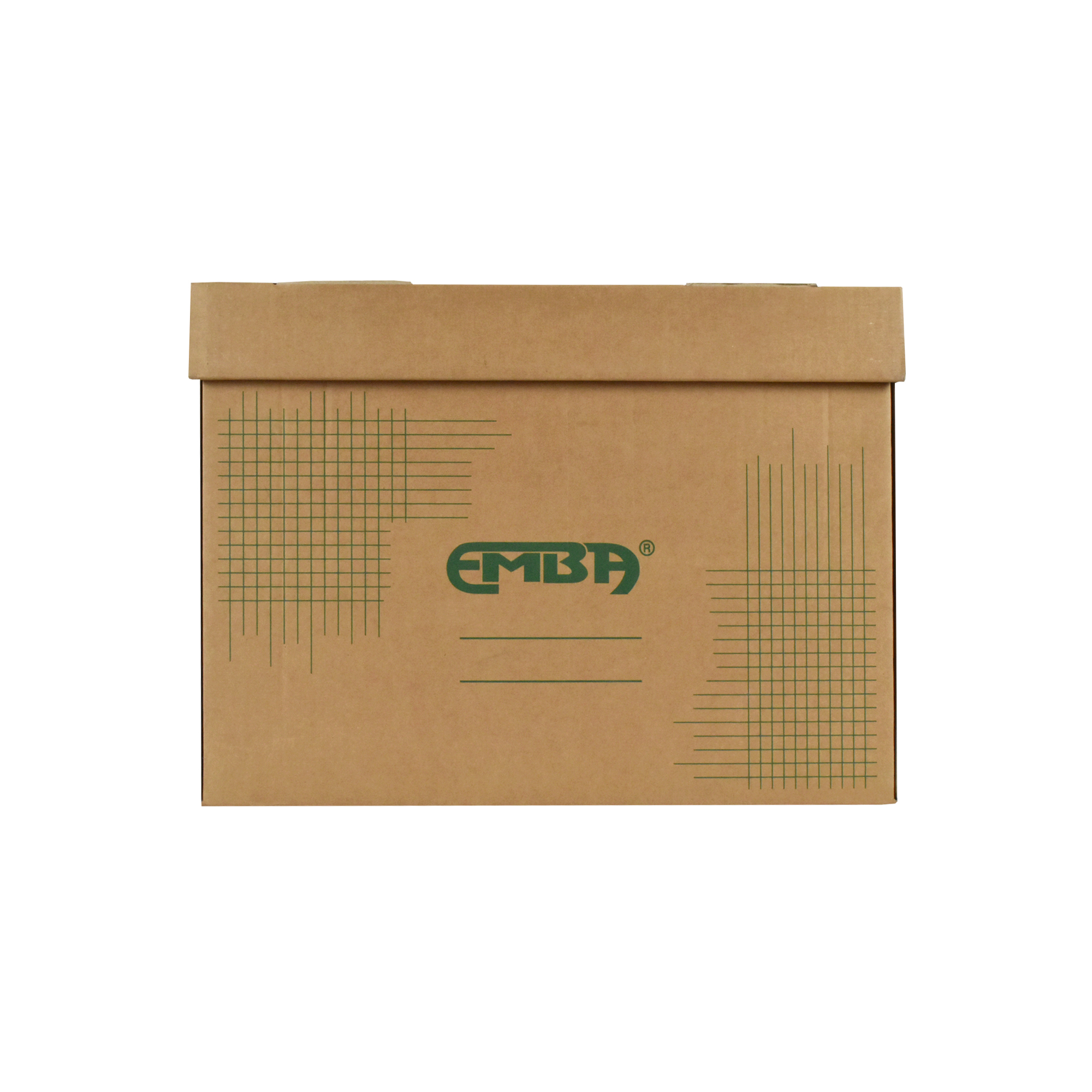 Škatuľa z hnedej vlnitej lepenky so sklápacím vekom a zelenou potlačou na ukladanie a archiváciu 5 zakladačov šírky 8 cm alebo archívnych boxov I/-75 mm. Rozmery (š x v x d) 425 x 330 x 300 mm. Nosnosť 100 Kg.