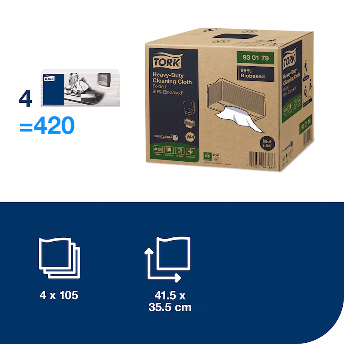 Utierky skladané TORK Heavy-Duty Biobased W4 1-vrstv., 105 útržkov