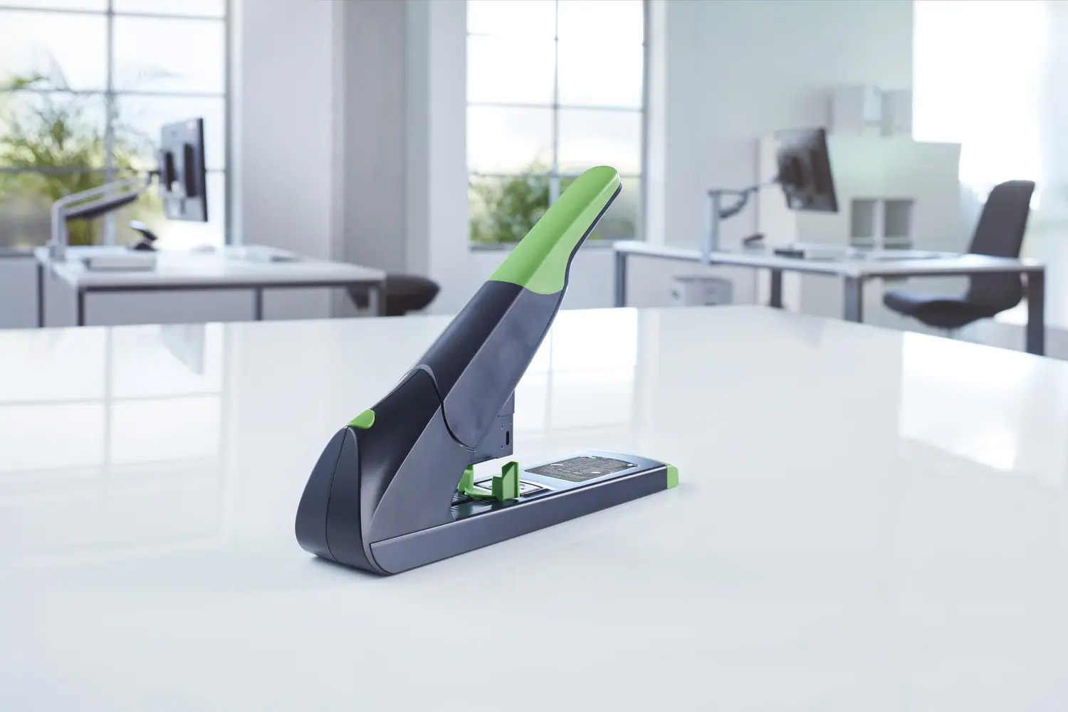 Veľkokapacitná zošívačka pre profesionálne použitie z kolekcie šetrnej k životnému prostrediu re+new. Kapacita súčasne zošitých listov až do 200 listov. Celokovová s plastovým krytom vyrobeným z udržateľného recyklátu. Systém ABS pre bezproblémové zošívanie bez zaseknutia spiniek. Kapacita náplne 100 spiniek 23/8 až 23/24 Super. Hĺbka zošívania 7,5 cm. Hmotnosť 1670 g. Záruka 25 rokov. Farba čierna.