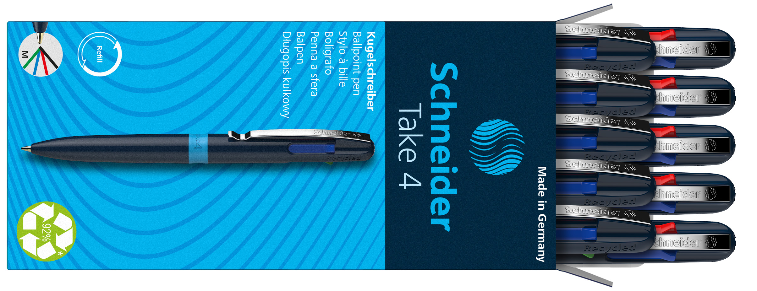 pero obsahuje náplne Take 4 Refill v 4 farbách ( čierna, modrá, červená a zelená)