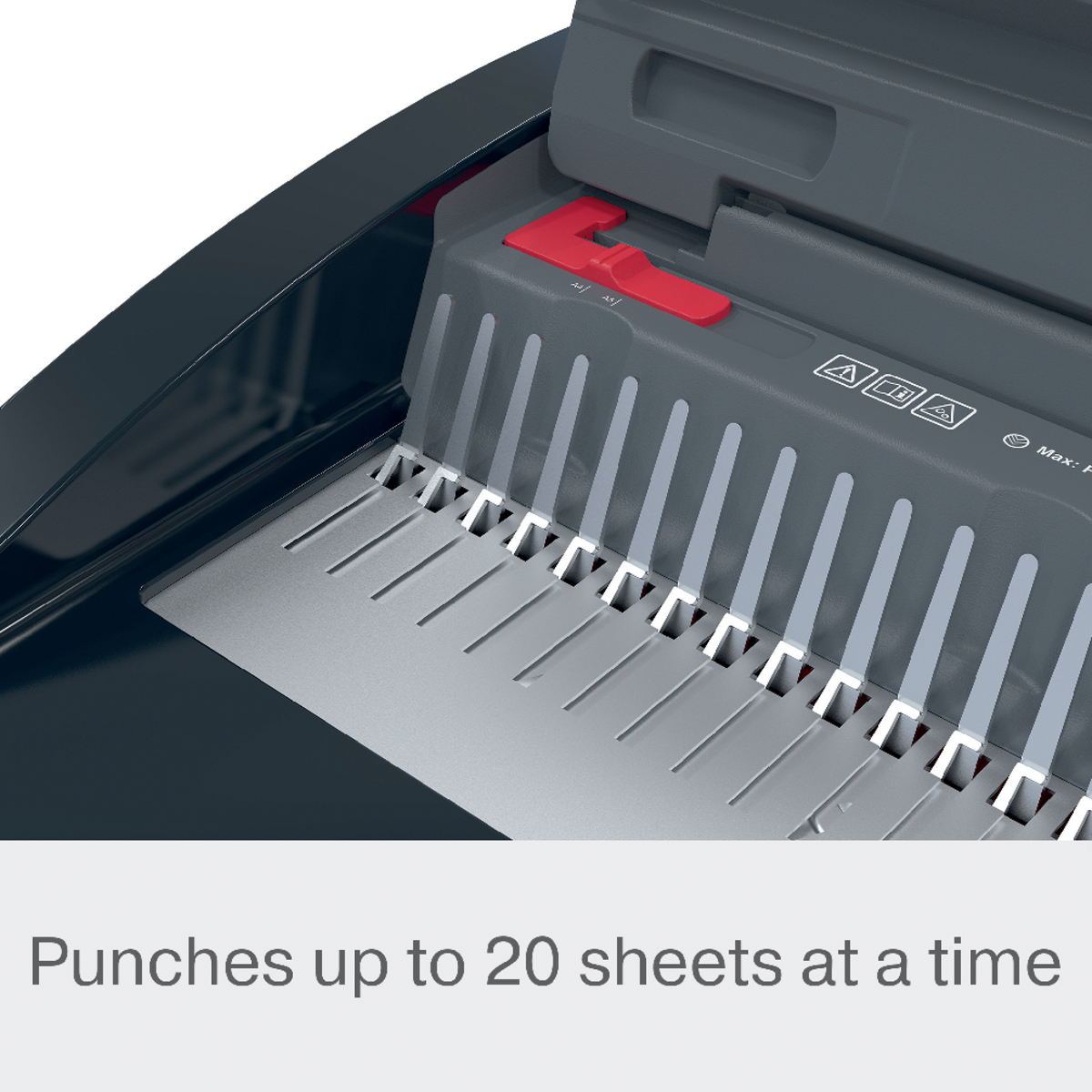 • spoľahlivý a kompaktný ručný viazač s plastovými chrbtami, navrhnutý na zdieľané použitie v kancelárskom a školskom prostredí s bežnými nárokmi na objem väzby
