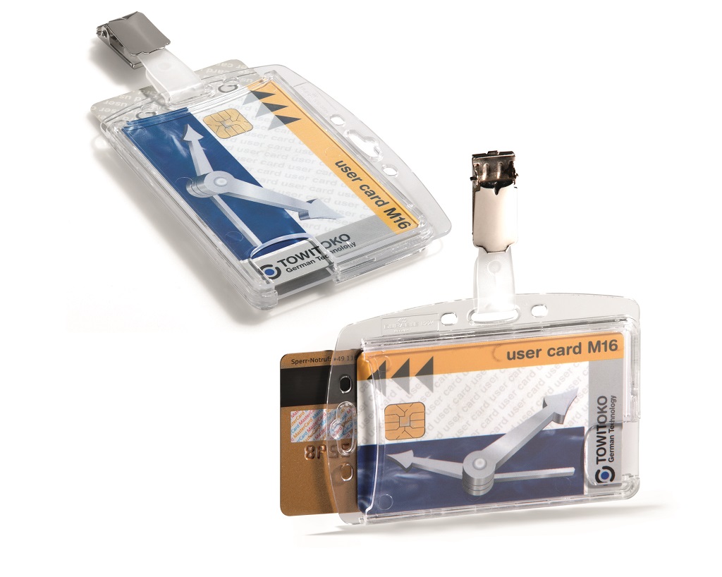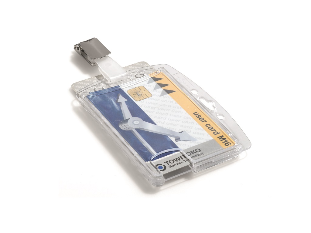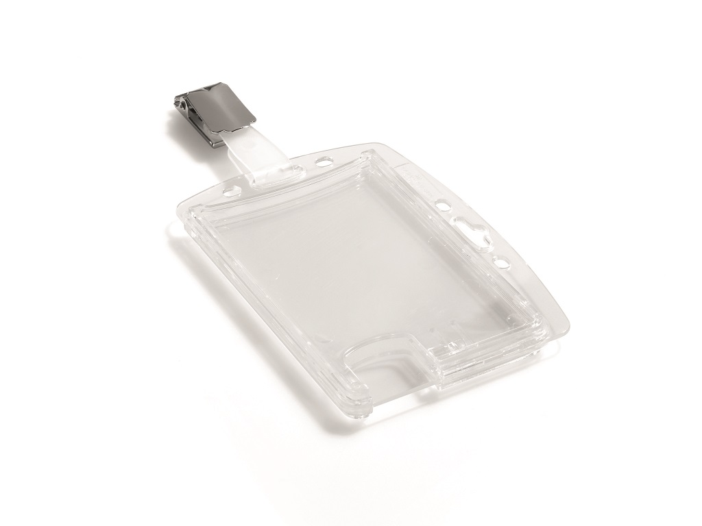 Visačka na dve plastové karty zo silného priehľadného nepružného plastu, chrániace karty z oboch strán. Vkladanie kariet po kratšej strane. Možnosť použitia horizontálne aj vertikálne. Uchytenie štipcom. Balenie 25 ks.