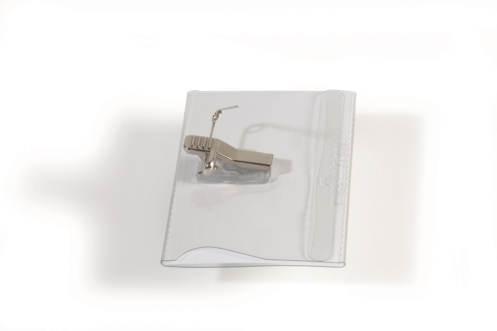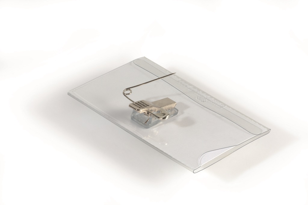 Visačky z pevného priehľadného PVC. Uchytenie na odev pomocou štipca alebo zatváracieho špendlíka. Náhradné papiere do visačiek obj. kód DU145502. Rozmery: 90×54 mm. Balenie 50 ks.