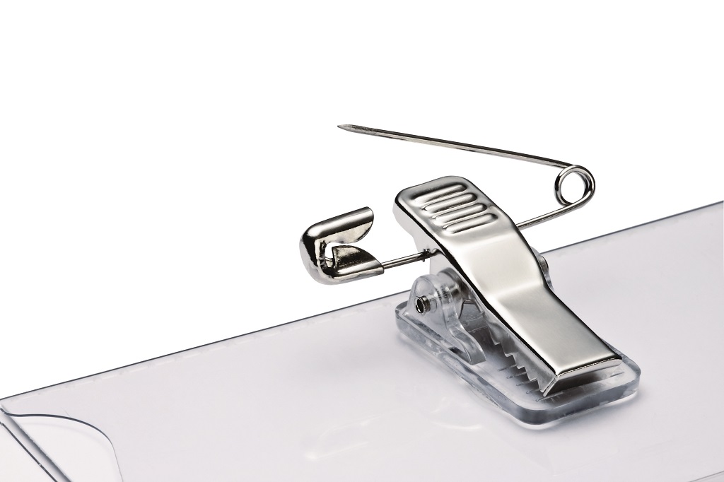 Visačka z pevného priehľadného PVC. Uchytenie na odev pomocou štipca alebo zatváracieho špendlíka. V balení 5 ks. Rozmery: 90 x 54 mm.