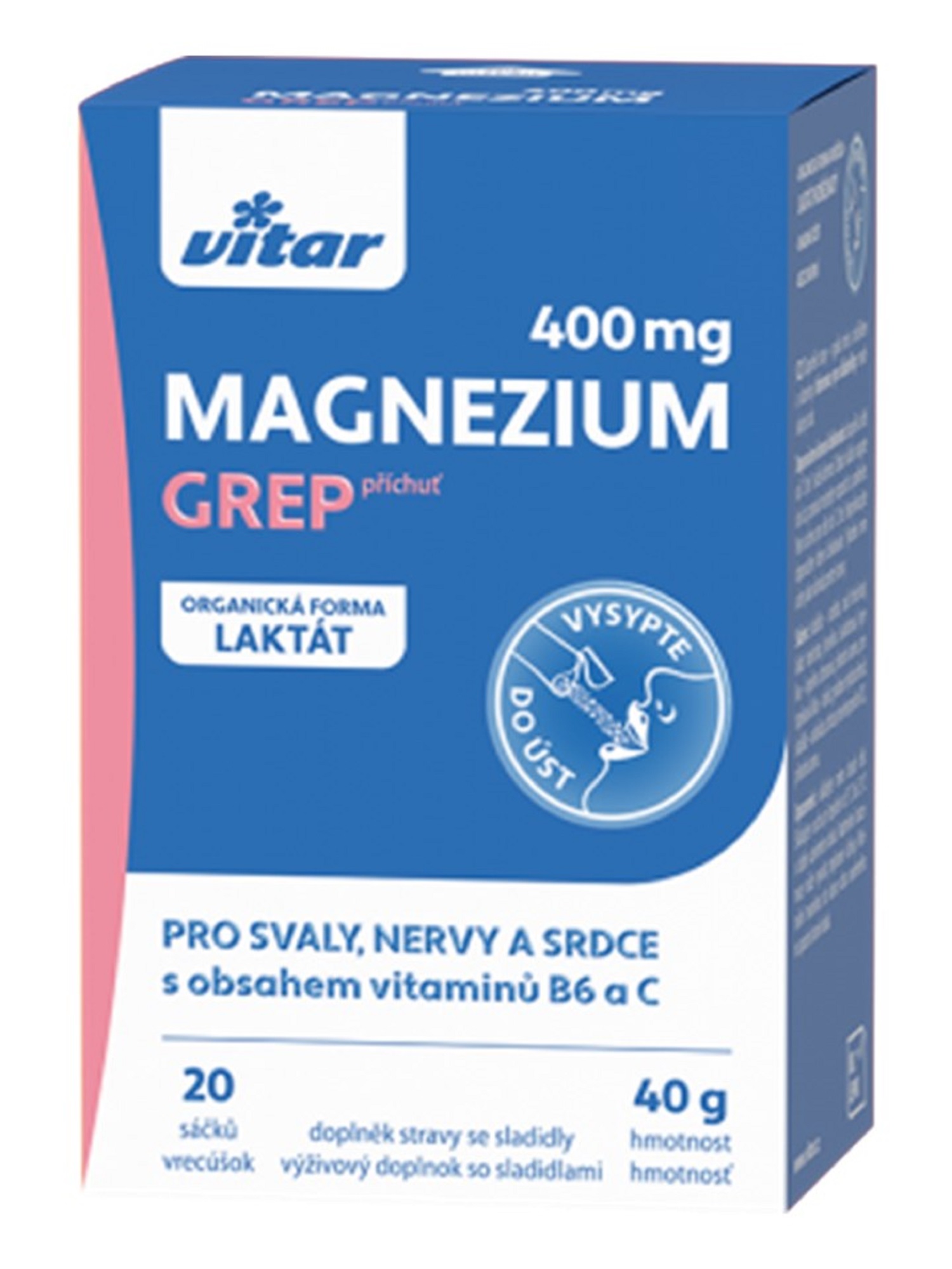 Vitar MAGNÉZIUM 400 mg+ vitamíny B6 a C s príchuťou grepu, (20sáčkov)