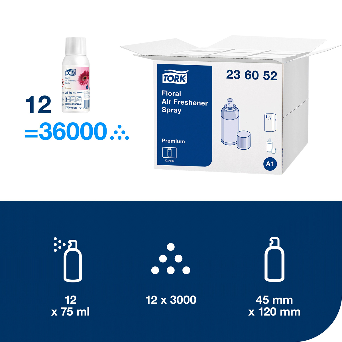 Náplň do elektronického osviežovača vzduchu TORK. Vôňu vo vašej toalete a umyvárni môžete dôkladne a efektívne kontrolovať. Sprej obsahuje vonné oleje a patentovanú zložku neutralizujúcu nepríjemné zápachy a zároveň poskytuje dlhotrvajúci pocit čerstvého vzduchu. Správna vôňa vyvinutá popredným európskym parfumérom. Objem 75 mℓ. Vôňa kvetinová.