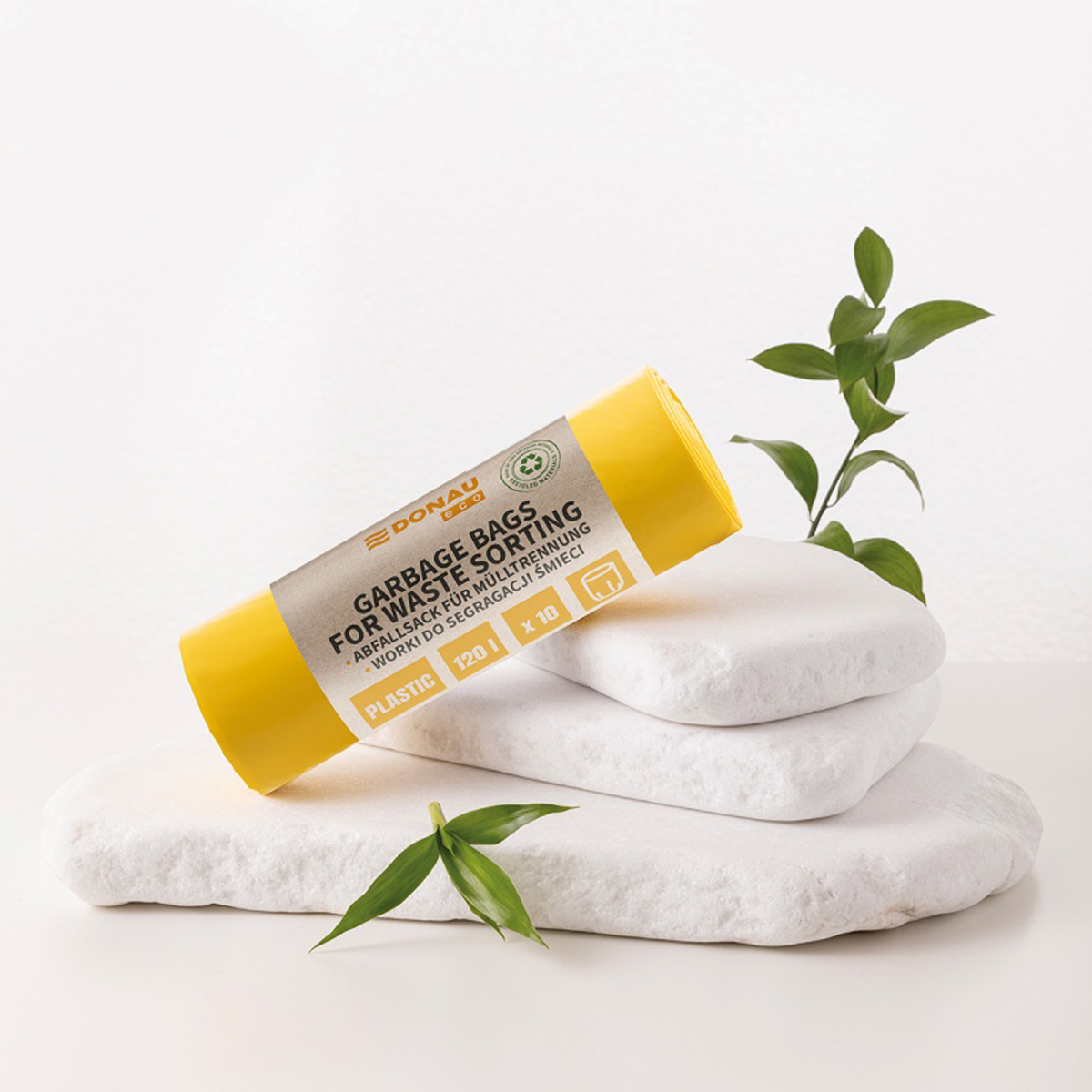 Vrecia zaväzovacie DONAU ECO na separovanie plastov, 120 ℓ, 35 mic, 10 ks, žlté