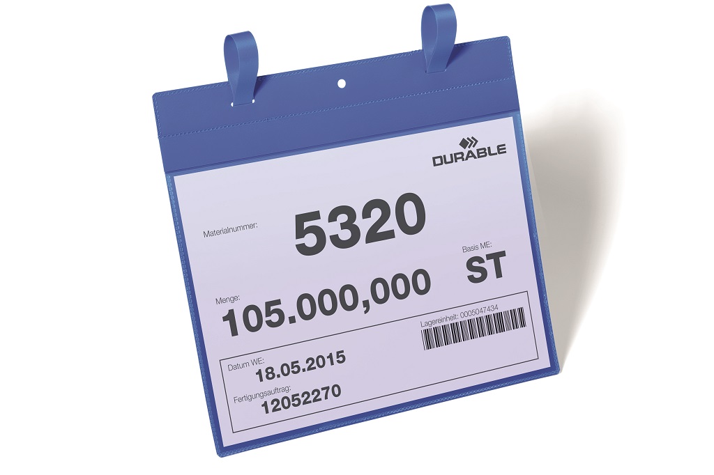 Plastové vrecká s priehľadnou prednou stranou a s 2 upínacími prúžkami s ochranou proti rozpojeniu sú vhodné na kovové povrchy, napr. sieťované kontajnery, rúry a prepravné kontajnery. Použiteľné aj v exteriéri vďaka ochrannej klope, chrániacej dokumenty proti dažďu, prachu a vlhku. Farba modrá. Formát A4 na šírku. Balenie 50 ks.