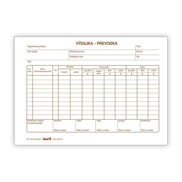 Výdajka – prevodka formátu A5, blok obsahuje 100 listov.