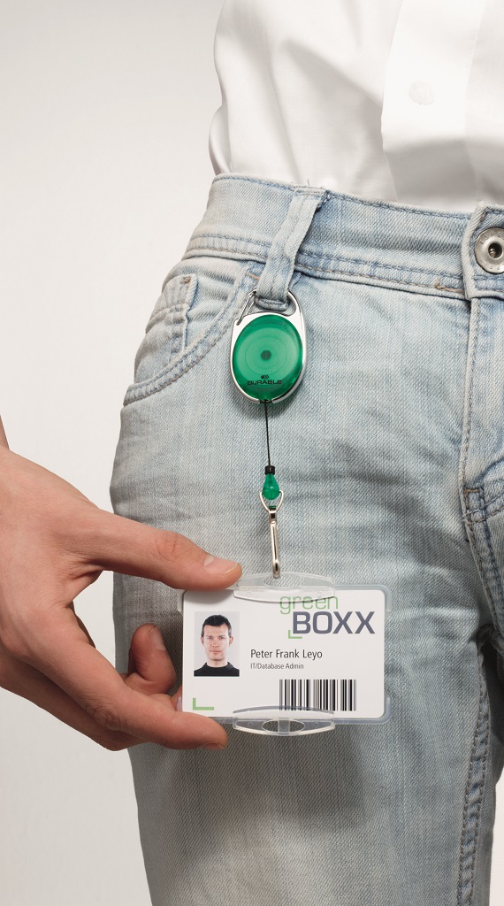 Štýlový kotúč s oválnym farebným telom a kovovým klipom so svorkou poskytuje rýchlu a jednoduchú manipuláciu s visačkou, príp.kartou. Vysunutie kotúča do dĺžky 80 cm. Dodávaný bez visačky. Farba zelená.