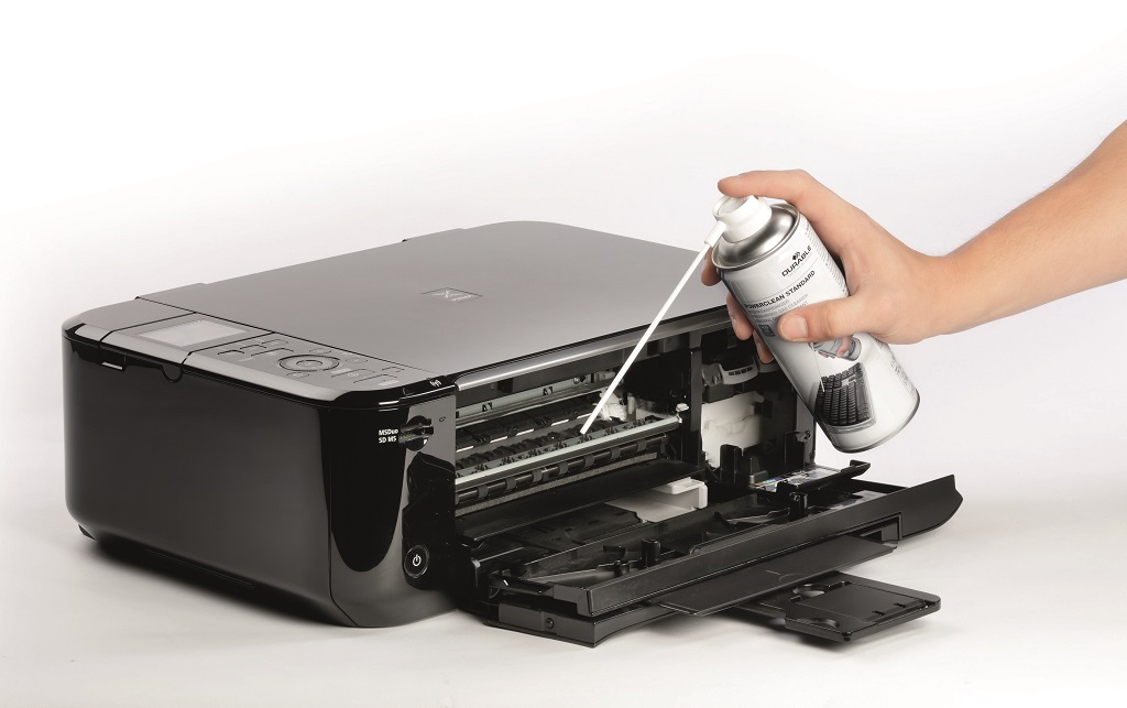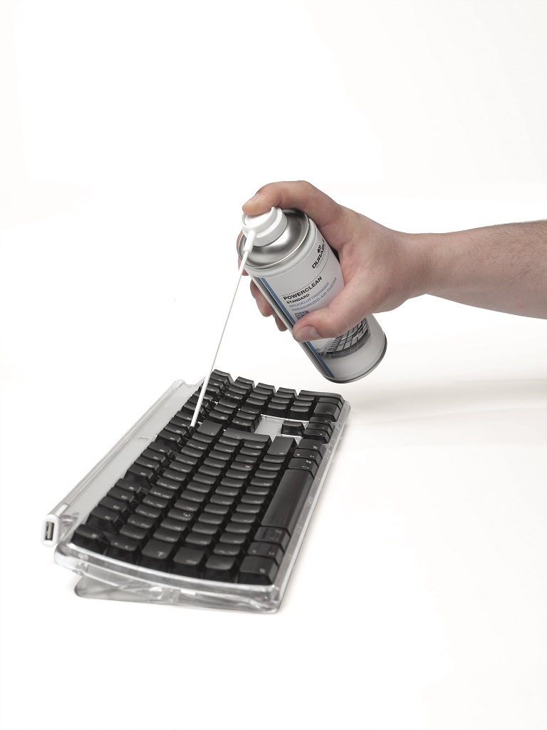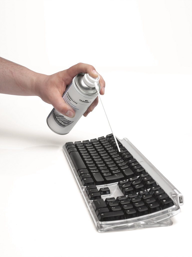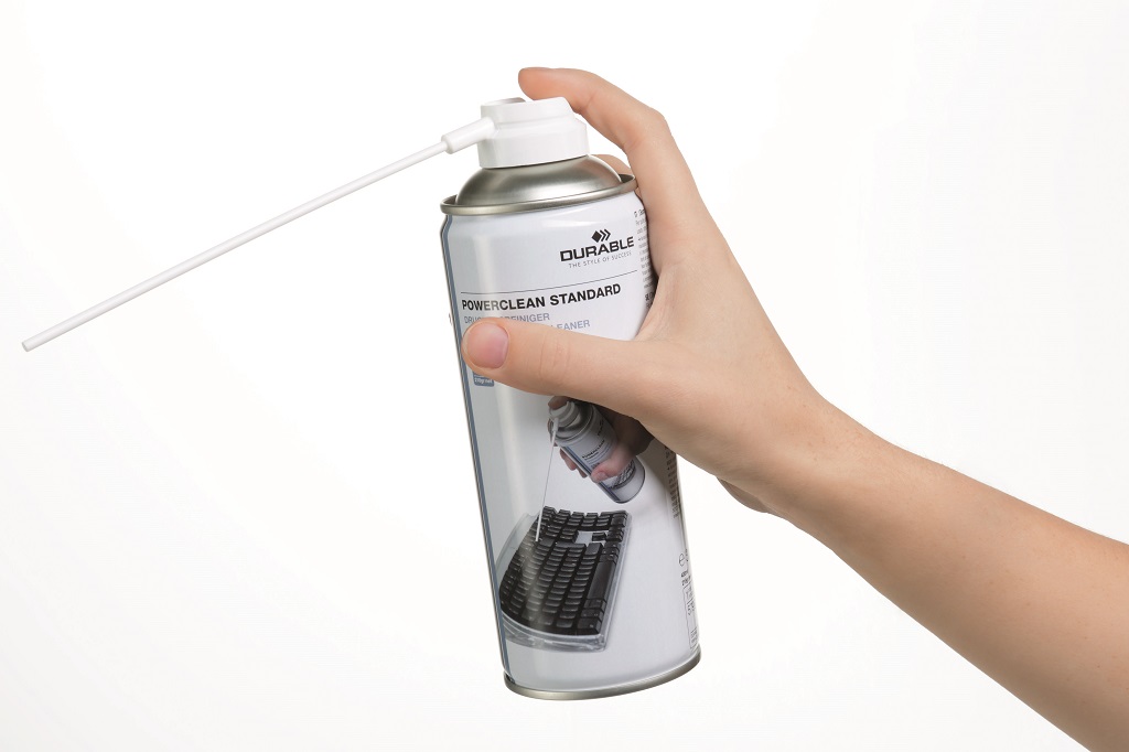 Vzduchový tlakový čistič na odstránenie prachu a nečistoty z ťažko prístupných alebo jemných miest, napr. klávesníc, notebookov, tlačiarní alebo fotografického vybavenia.