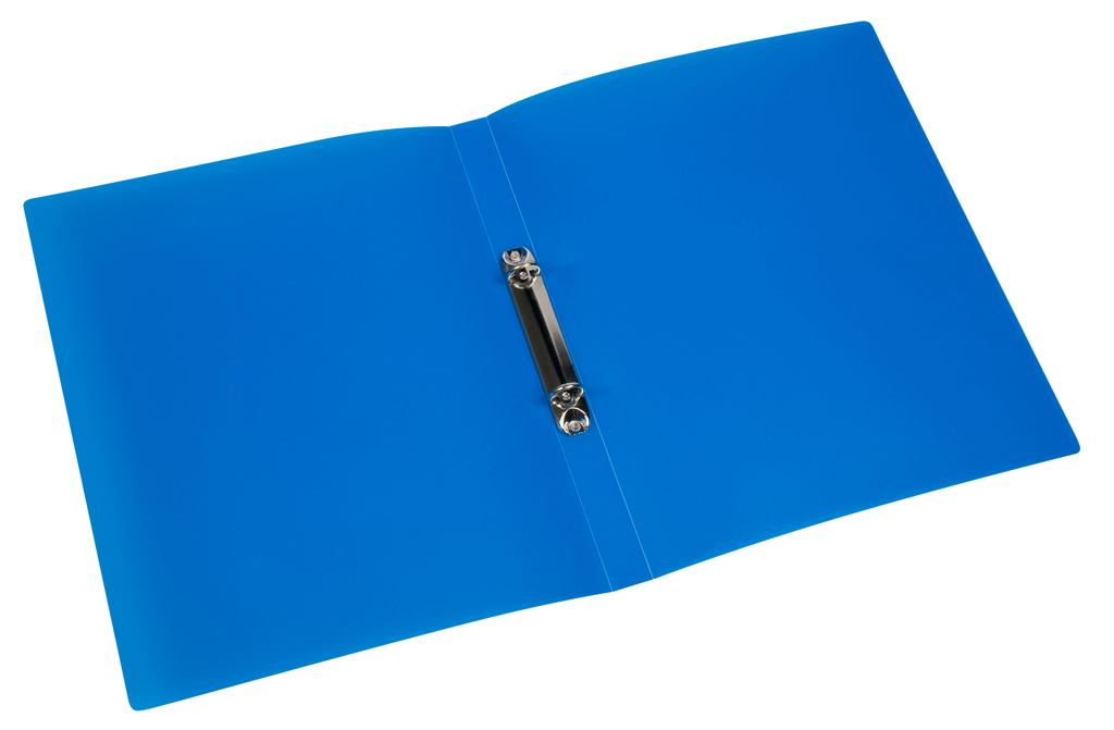 Krúžkový zakladač z polypropylénu. Formát A4. Väčšie balenie 12 ks. Krúžok 16 mm. Chrbát 2 cm. Farba transparentná modrá.