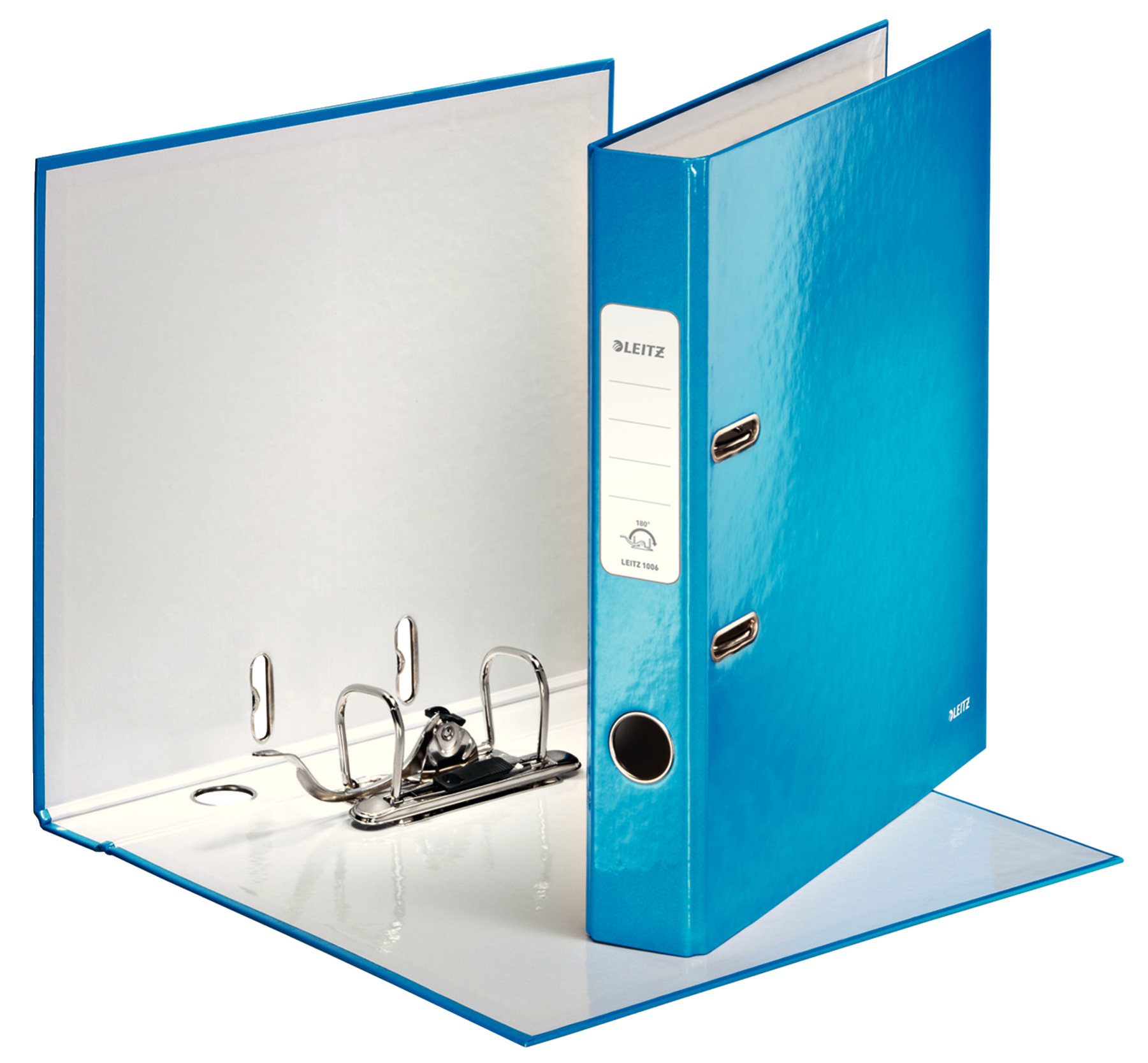 Pákový zakladač rady WOW v žiarivej metalickej modrej farbe s dvojfarebným efektom. Unikátna patentovaná mechanika Leitz 180° poskytuje širšie otvorenie, možnosť zakladania väčšieho množstva papierov a o 20 % rýchlejšiu prácu so zakladačom. Vybavený chrbtovým krúžkom, rado zámkom a samolepiacim chrbtovým štítkom, ktorý môže byť v prípade potreby odstránený. Šírka chrbta 5 cm, kapacita 350 listov. Väčšie balenie 10 ks.