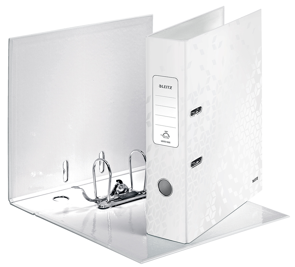 Pákový zakladač rady WOW v žiarivej perleťovo bielej farbe s dvojfarebným efektom. Unikátna patentovaná mechanika Leitz 180° poskytuje širšie otvorenie, možnosť zakladania väčšieho množstva papierov a o 20 % rýchlejšiu prácu so zakladačom. Vybavený chrbtovým krúžkom, rado zámkom a samolepiacim chrbtovým štítkom, ktorý môže byť v prípade potreby odstránený. Šírka chrbta 8 cm, kapacita 600 listov. Väčšie balenie 10 ks.