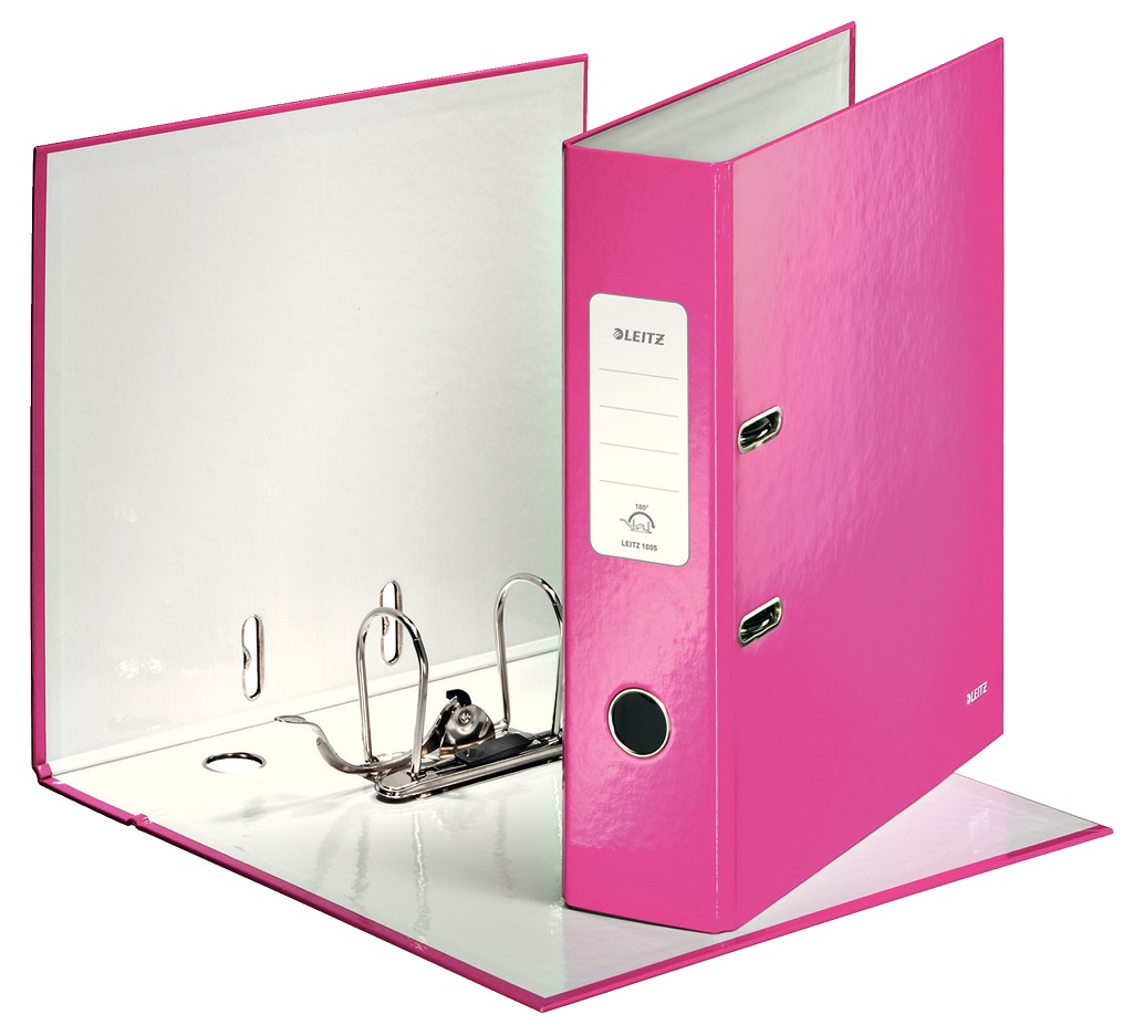 Pákový zakladač rady WOW v žiarivej metalickej ružovej farbe s dvojfarebným efektom. Unikátna patentovaná mechanika Leitz 180° poskytuje širšie otvorenie, možnosť zakladania väčšieho množstva papierov a o 20 % rýchlejšiu prácu so zakladačom. Vybavený chrbtovým krúžkom, rado zámkom a samolepiacim chrbtovým štítkom, ktorý môže byť v prípade potreby odstránený. Šírka chrbta 8 cm, kapacita 600 listov. Väčšie balenie 10 ks.