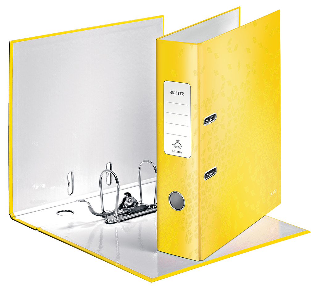 Pákový zakladač rady WOW v žiarivej žltej farbe s dvojfarebným efektom. Unikátna patentovaná mechanika Leitz 180° poskytuje širšie otvorenie, možnosť zakladania väčšieho množstva papierov a o 20 % rýchlejšiu prácu so zakladačom. Vybavený chrbtovým krúžkom, rado zámkom a samolepiacim chrbtovým štítkom, ktorý môže byť v prípade potreby odstránený. Šírka chrbta 8 cm, kapacita 600 listov. Väčšie balenie 10 ks.