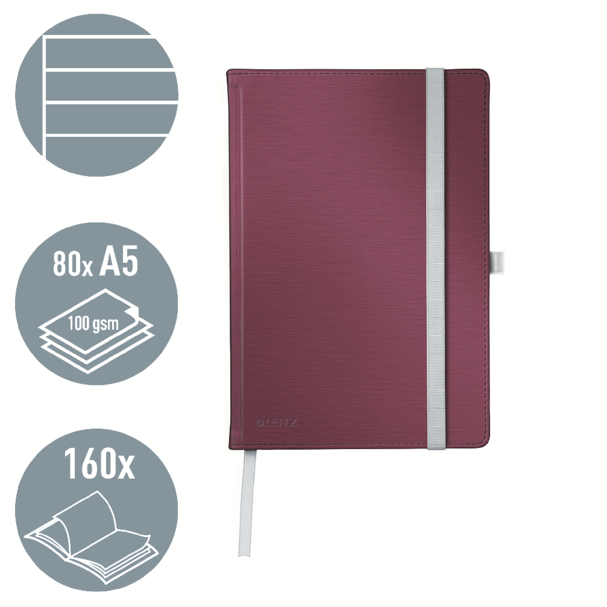 Zápisník linajkový HC A5 Leitz Style tvrdé dosky granátový červený
